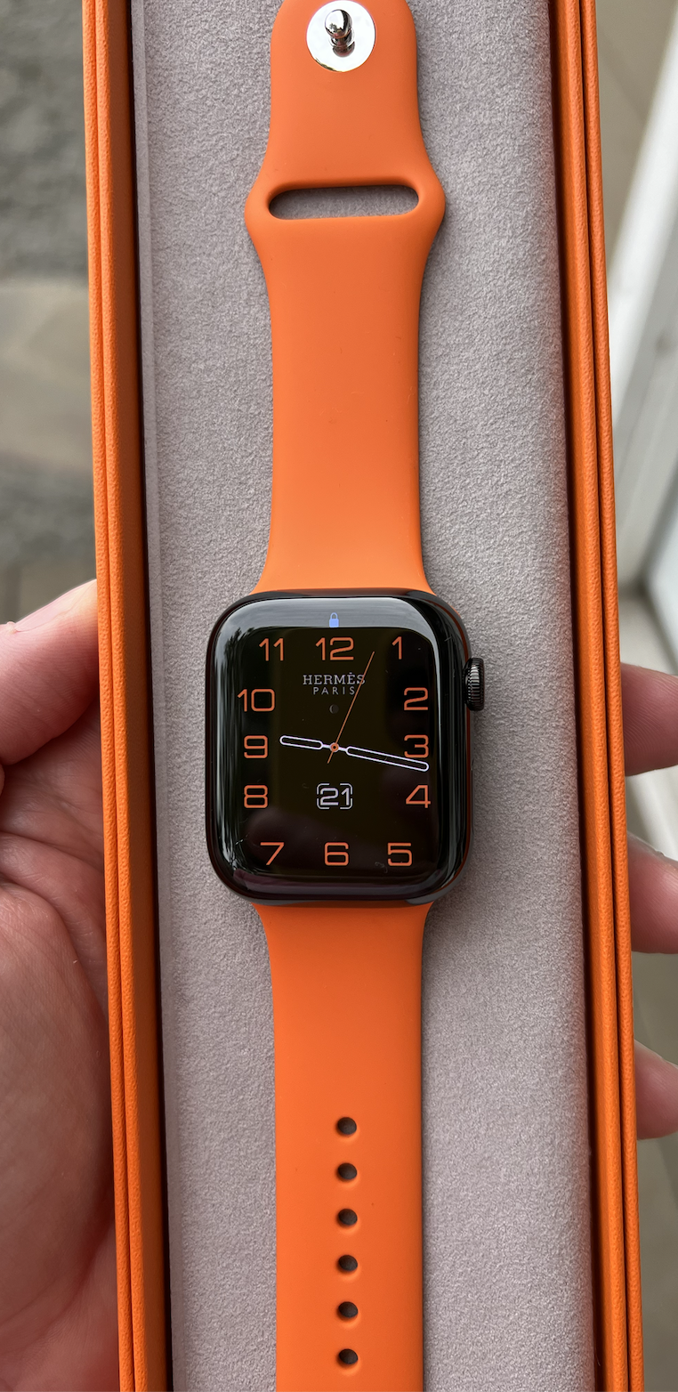 Looks amazing that Orange with the Space Black!That band matches everything. Hermes Orange is incredible.