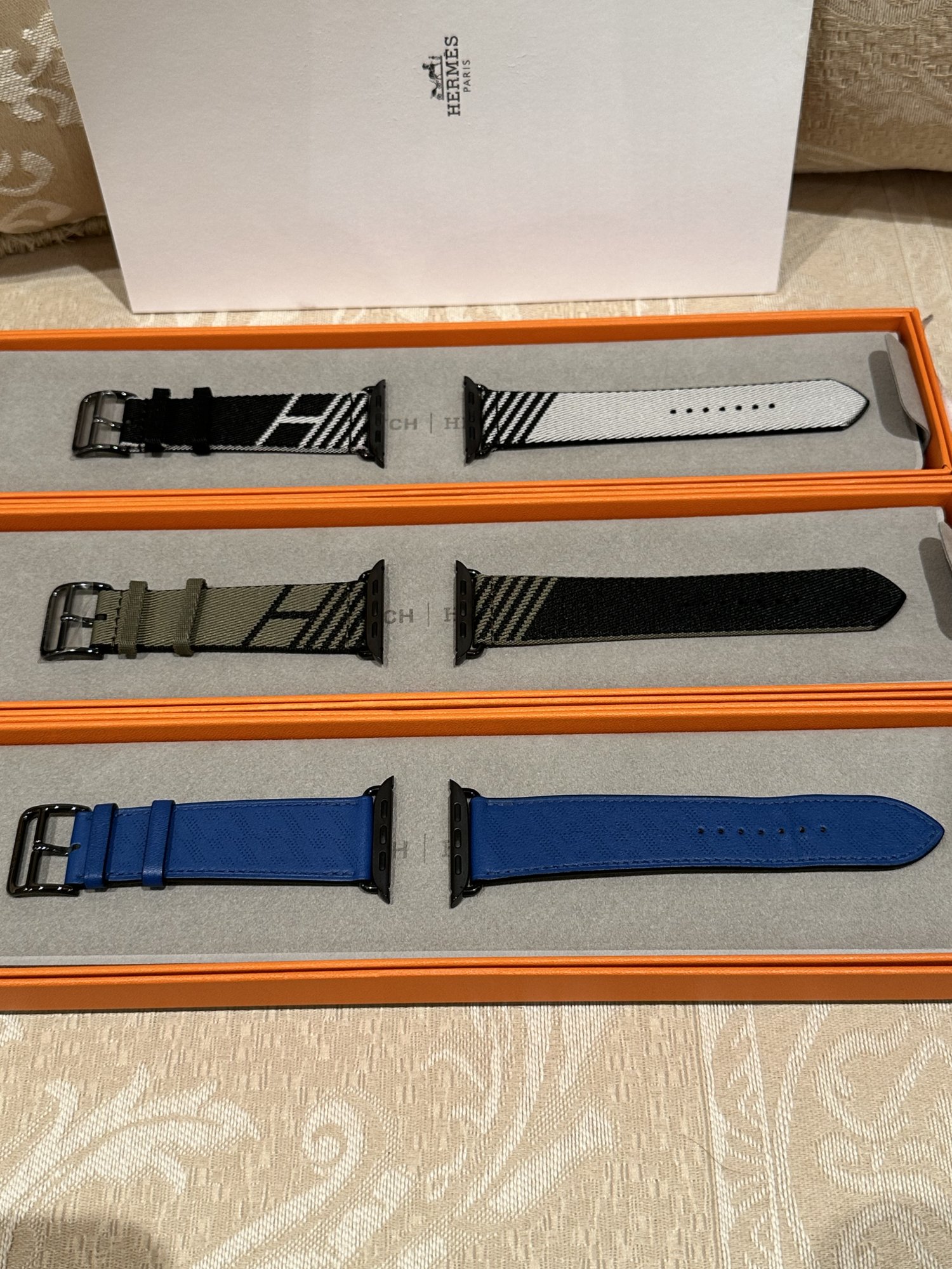 Hi all. Ultra owner with a couple of Hermés leather bands (Orange Swift single, Noir deployment).