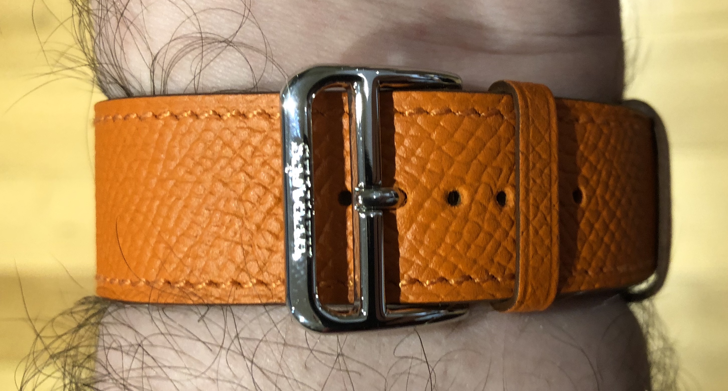 After too much effort, a replacement — and flawless — orange sports strap was sent out. Apple had confused itself so much over the whole affair, that it didn’t ask for the other one back. Which means I have a virtually perfect (“I thought you said it was defective?”) Hermès orange sports strap that I could sell.