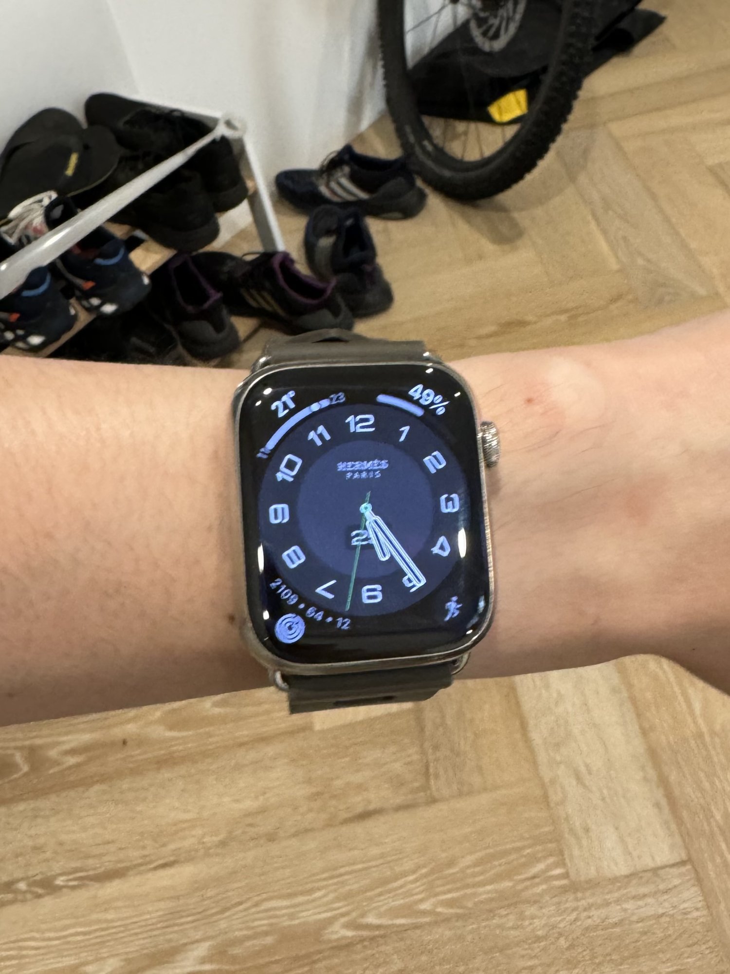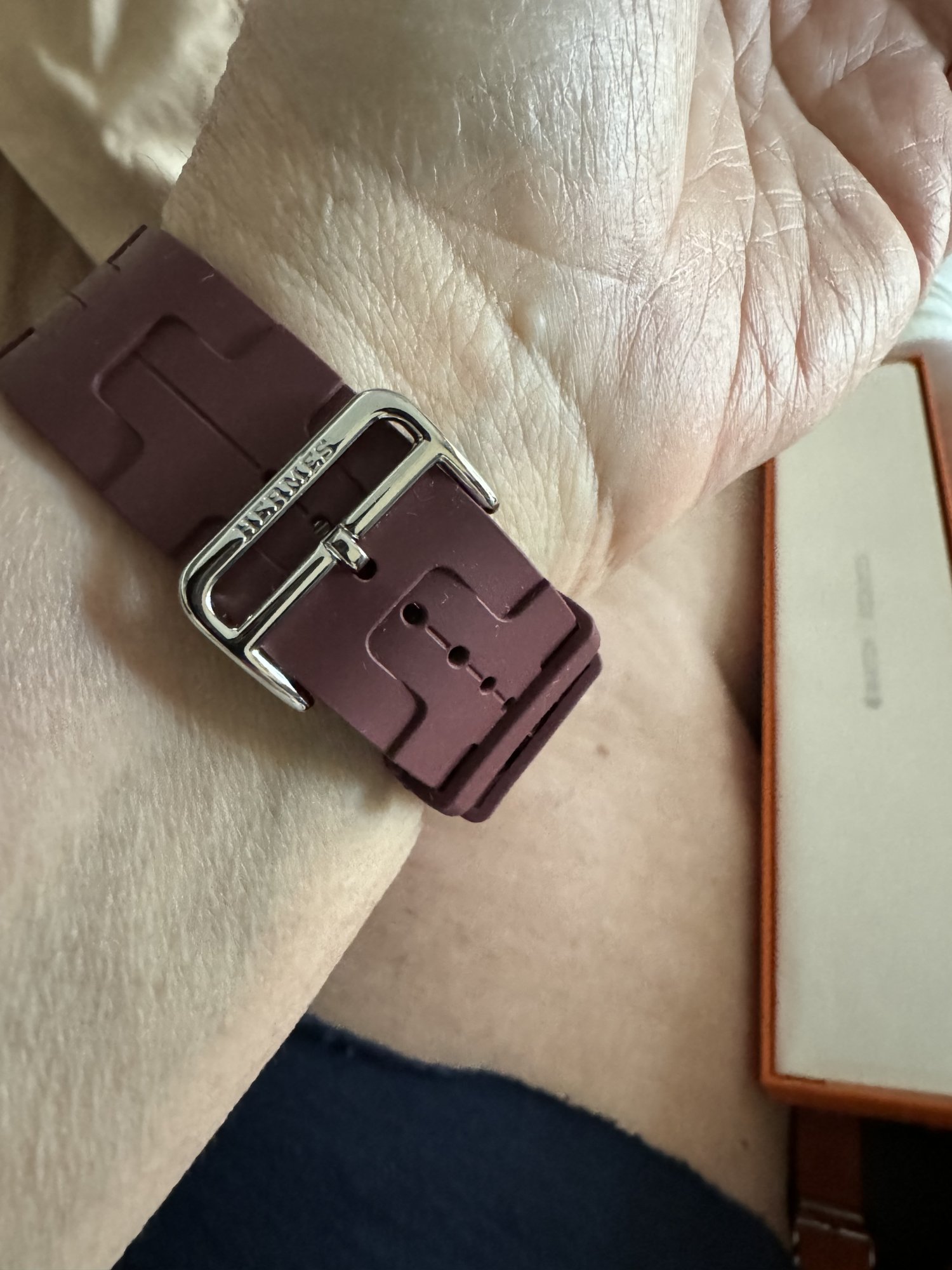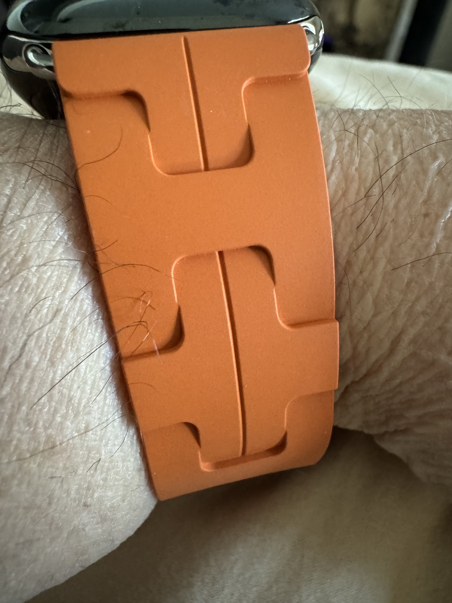 I feel like it’s very small. I’m normally the second smallest hole on sport and Hermes bands. But this band, I’m the fourth smallest hole.