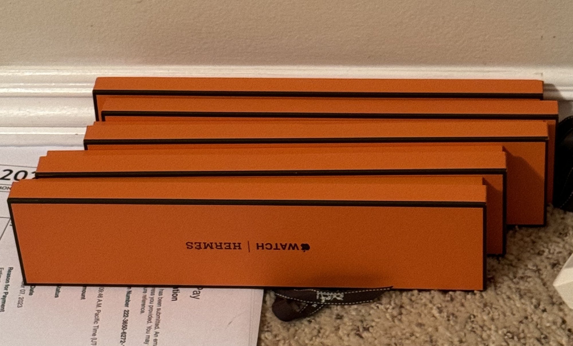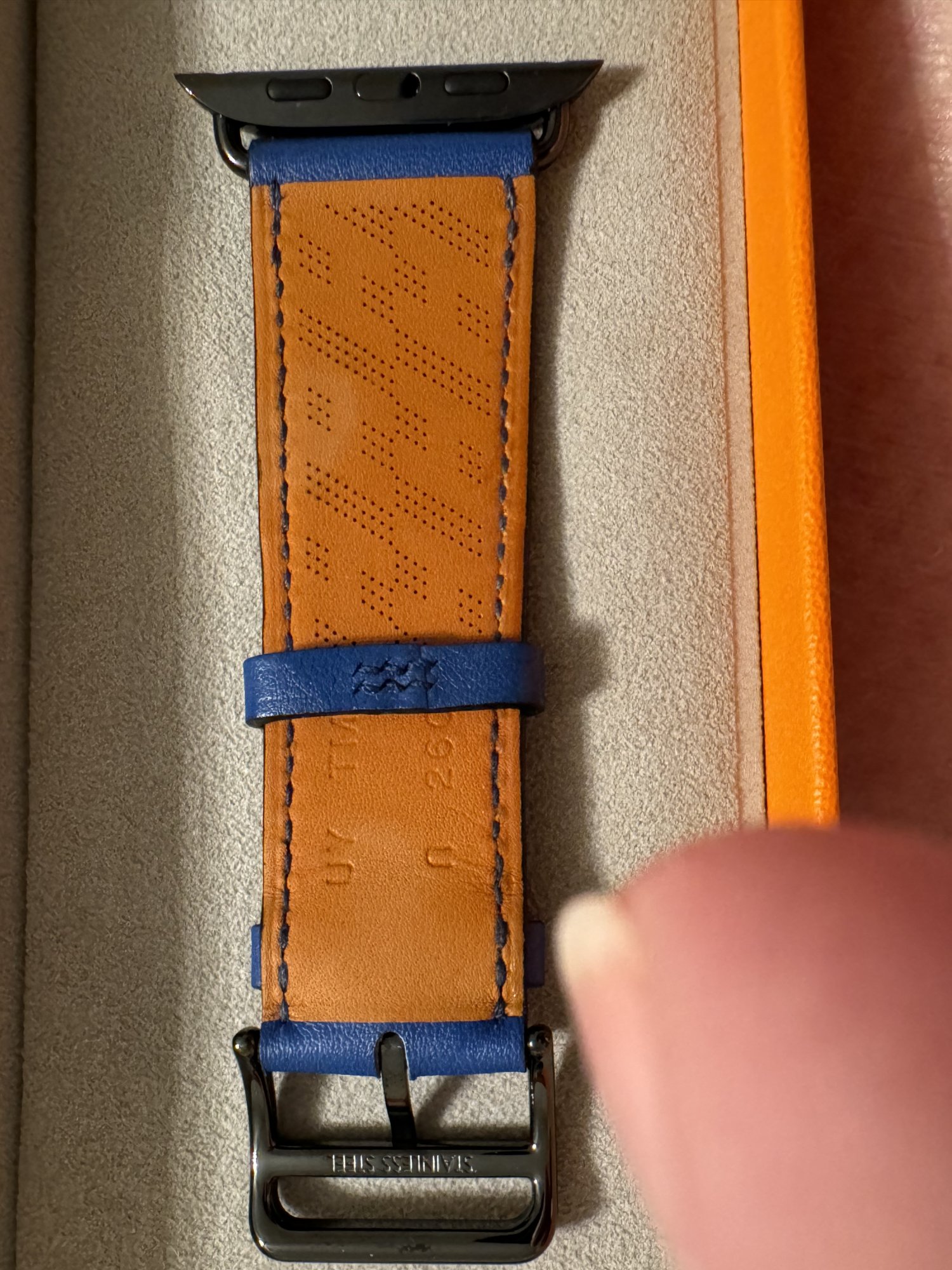 This makes sense now! I wear my leather and jumping bands on the tightest hole. I wear my Toile H and Kilim bands on the second tightest hole since they wouldn’t tighten to the tightest hole. Now I know why!After criticizing the Swift leather and saying I would be interested in the Fauve if only I could find a new one...I did, on eBay. Not NIB, but very definitely genuine to my eye, the only "wear" I can see is a try-on crease on the near hole and darkening from the amount of time that's passed. Happy to get this since it appears from my research the last time it was offered in the smaller size was Series 6 - back in 2020.