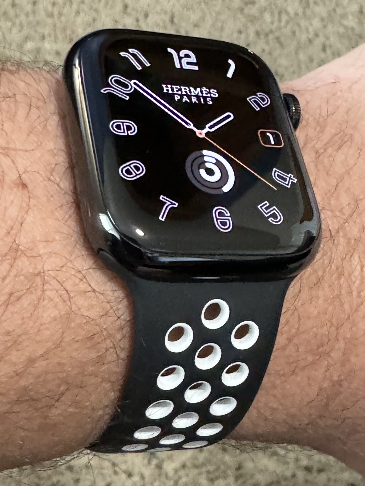 Classic example where the Apple render doesn’t do the band justice in real life. That is 🔥🔥🔥!I ordered on Tues night and it'll be here tomorrow already! Hermes with the fast free shipping. I honestly don't even know how I got the order in...I refreshed the page, saw it was available, made the purchase, and then like an hour later it was off the website. The orange Kilim was meant to be for sure.