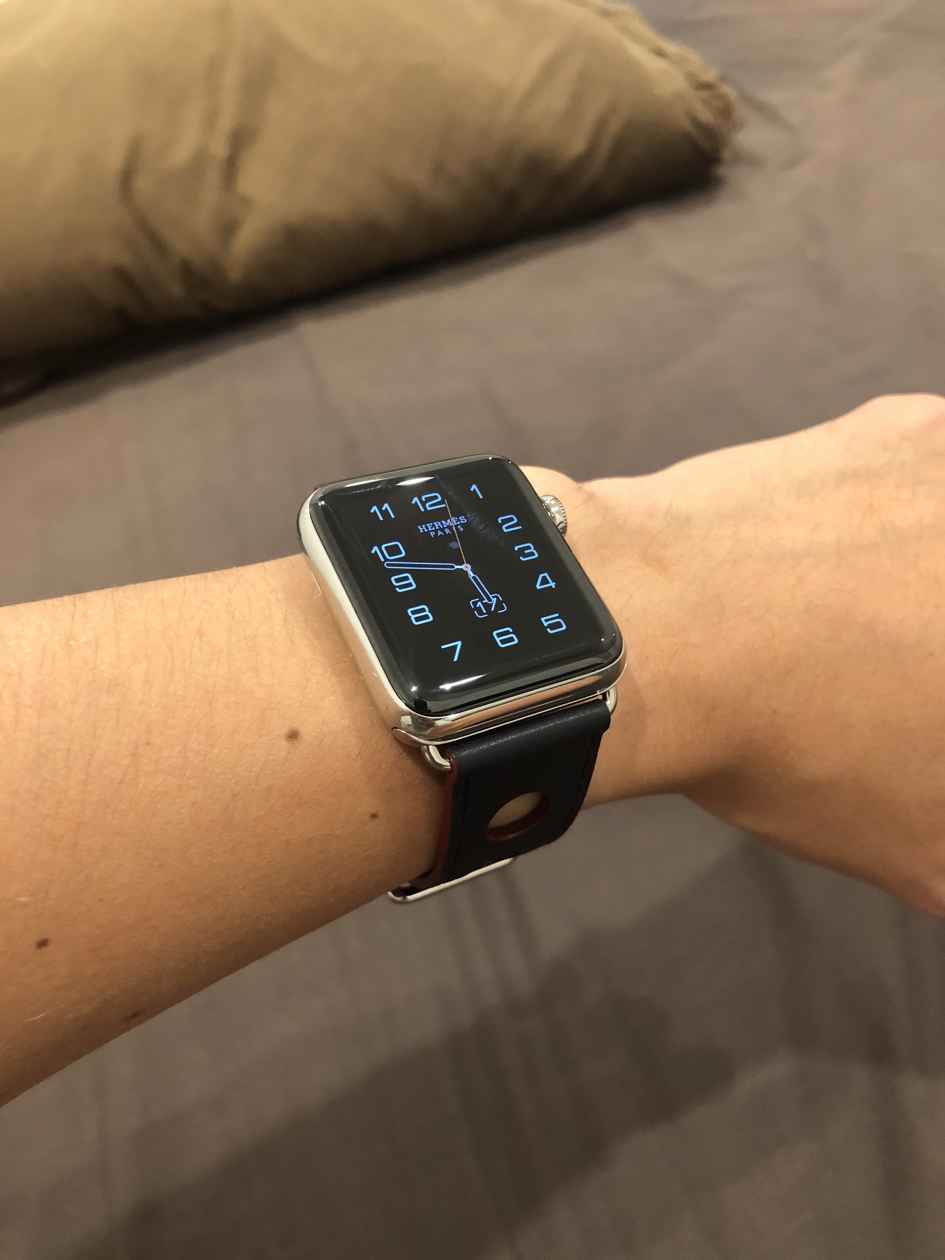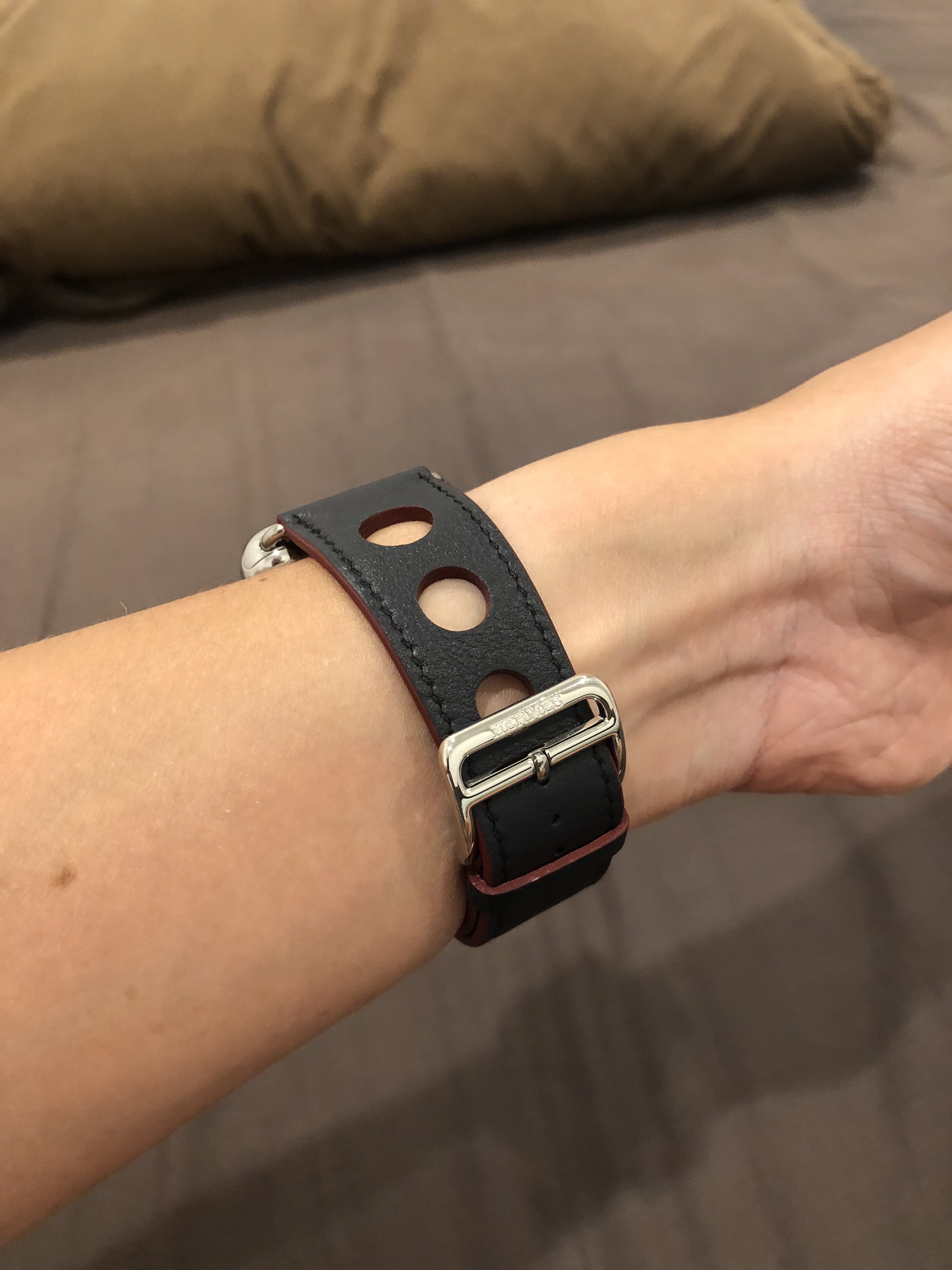 I finally couldn't resist and bought the indigo/rouge H rallye band - Here are some pics.