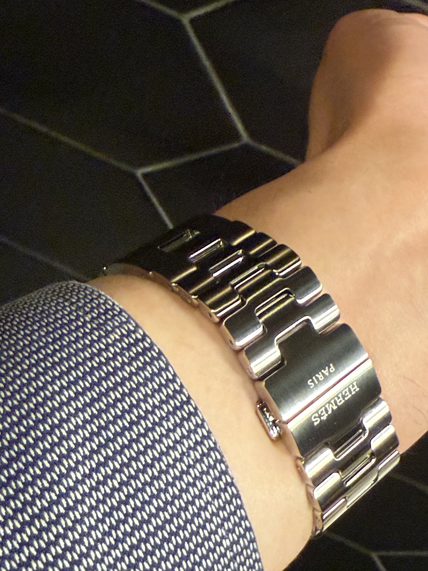 That is my entire life and my entire collection, but not by choice. I have tiny tiny 150mm wrist and not a single 45mm fits me, even after Hermes punched 2 extra holes to make 45mm bands smaller. Literally *none* of the 45mm fit me other than the super rare 45mm Double Tours.I’ve always gotten the larger size for Apple Watches but the Hermes band colors and options for the smaller watch size are so tempting. Do any of you wear the 44/45/46mm watch with 40/41/42mm bands? I know the lugs will be smaller than the space allotted for it but does it impact comfort levels (will things snag against the sides) and so on?