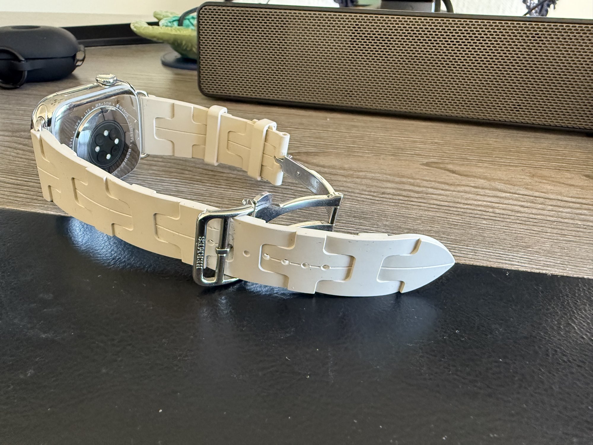 I am a size 1 (technically 2) in the braided solo loop, and wear my leather band on the smallest hole. It is quite comfortable.Thanks, I like the look of the Kilim but since I have 2 other AWs that I will wear more for every day use my Hermes will be for dress up. I am thinking that leather is definitely the way to go hopefully it fits ok with my small wrist.