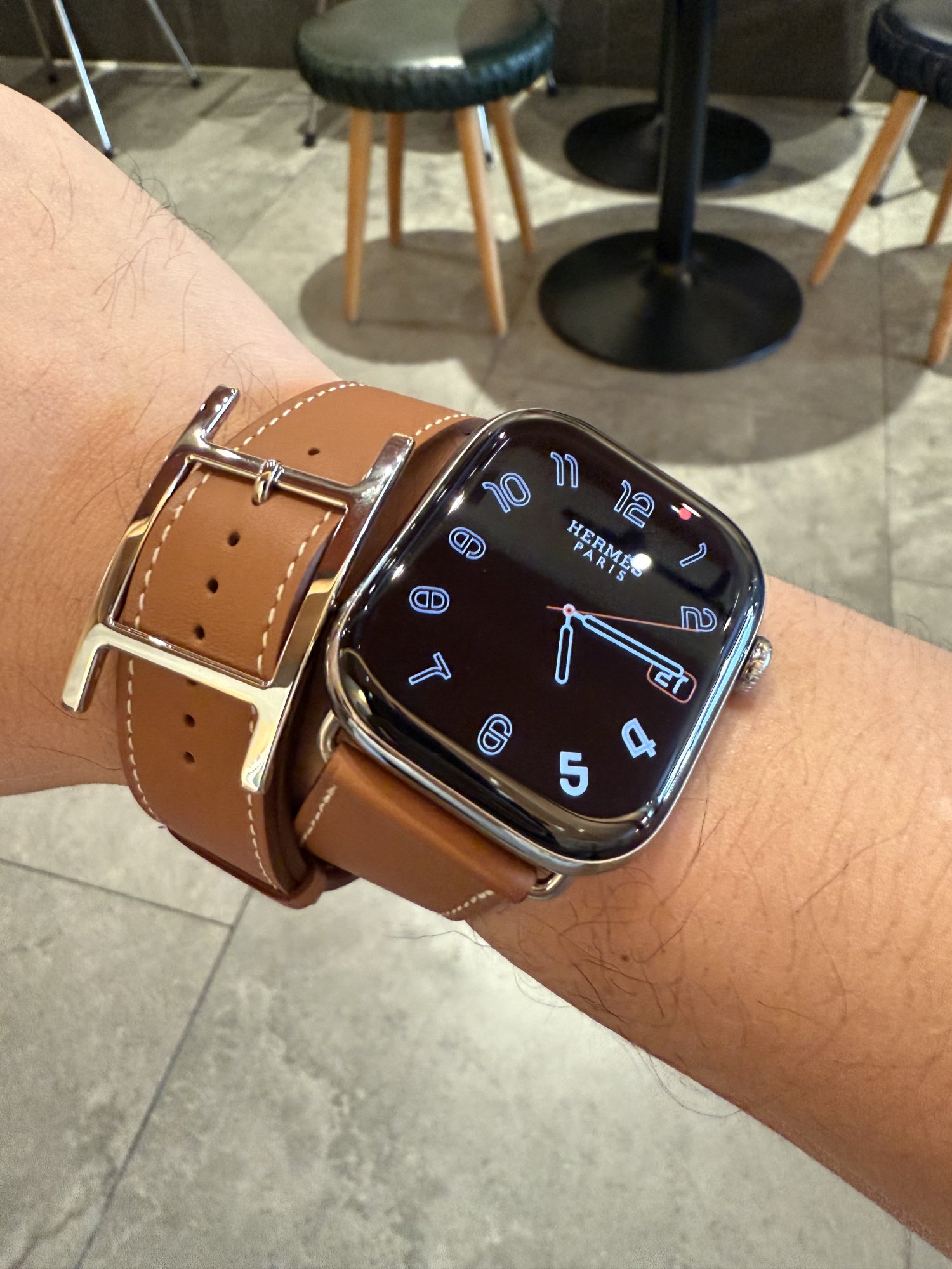 View attachment 2466379Received the Hapi double tour for the 46mm watch - as I’m left handed I wear my watch on my right wrist which means the H ends up closer to my wrist - I think the other way is more ideal but the crown gets in the way. Super soft leather and doesn’t have an insert like the other double tours (from what I understand). The watch is held in place pretty securely and its overall quite comfortable to wear, but it’s really a pain getting the strap on and off. Can’t make any returns to Hermes but I think this will remain an occasional strap for me.