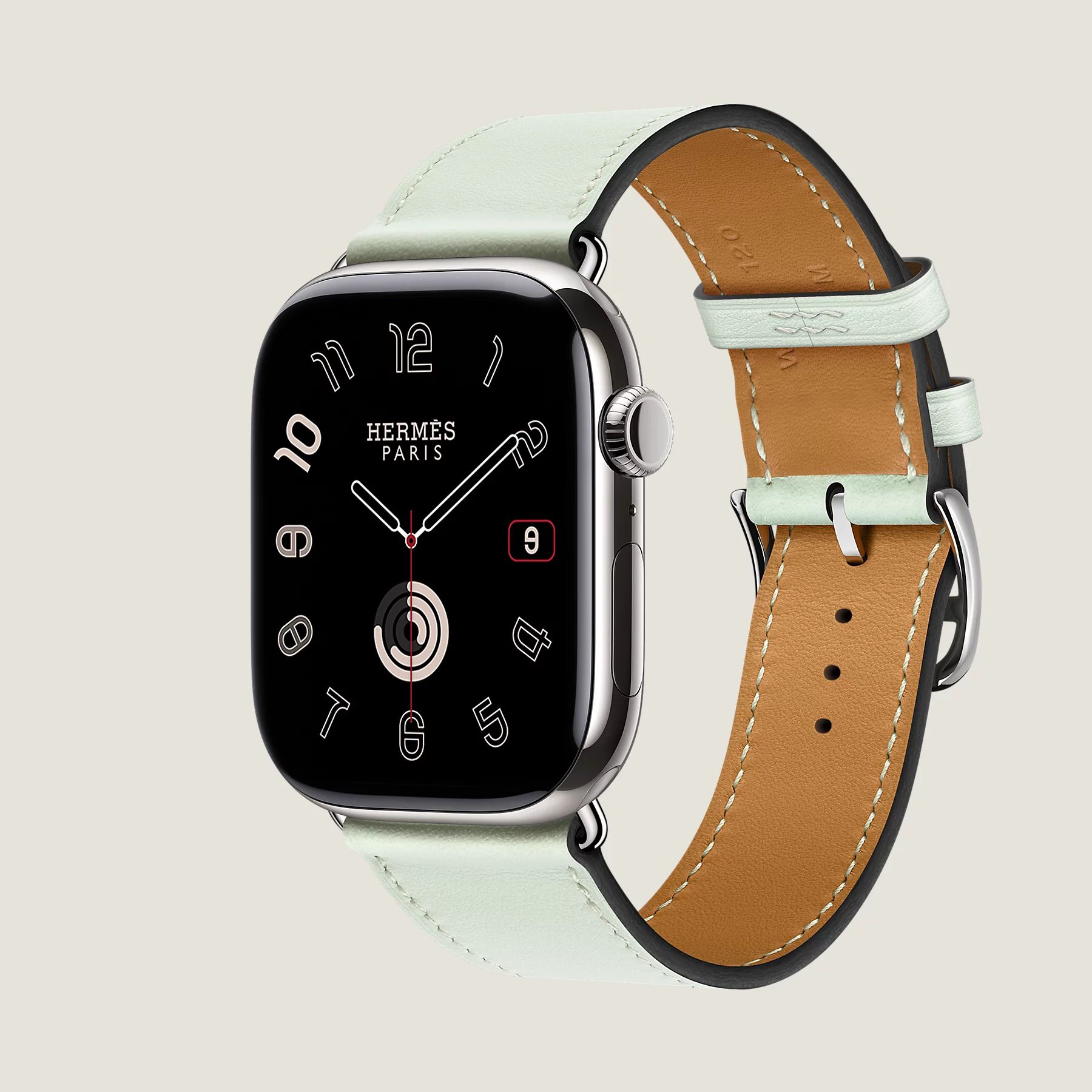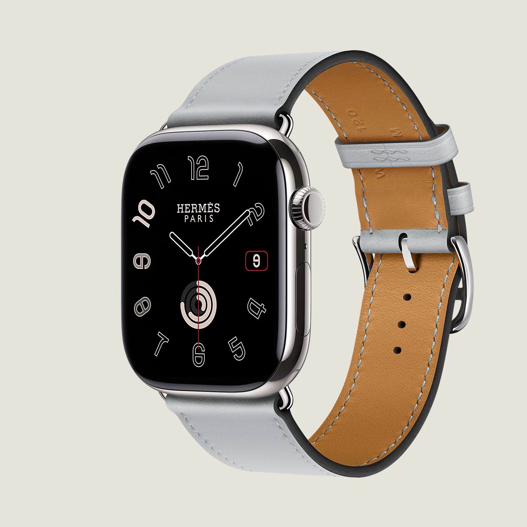 Apple Watch Hermès Series 10 case in titanium 46 mm & Single tour band in Bleu Glacier Swift calfskinwww.hermes.cn