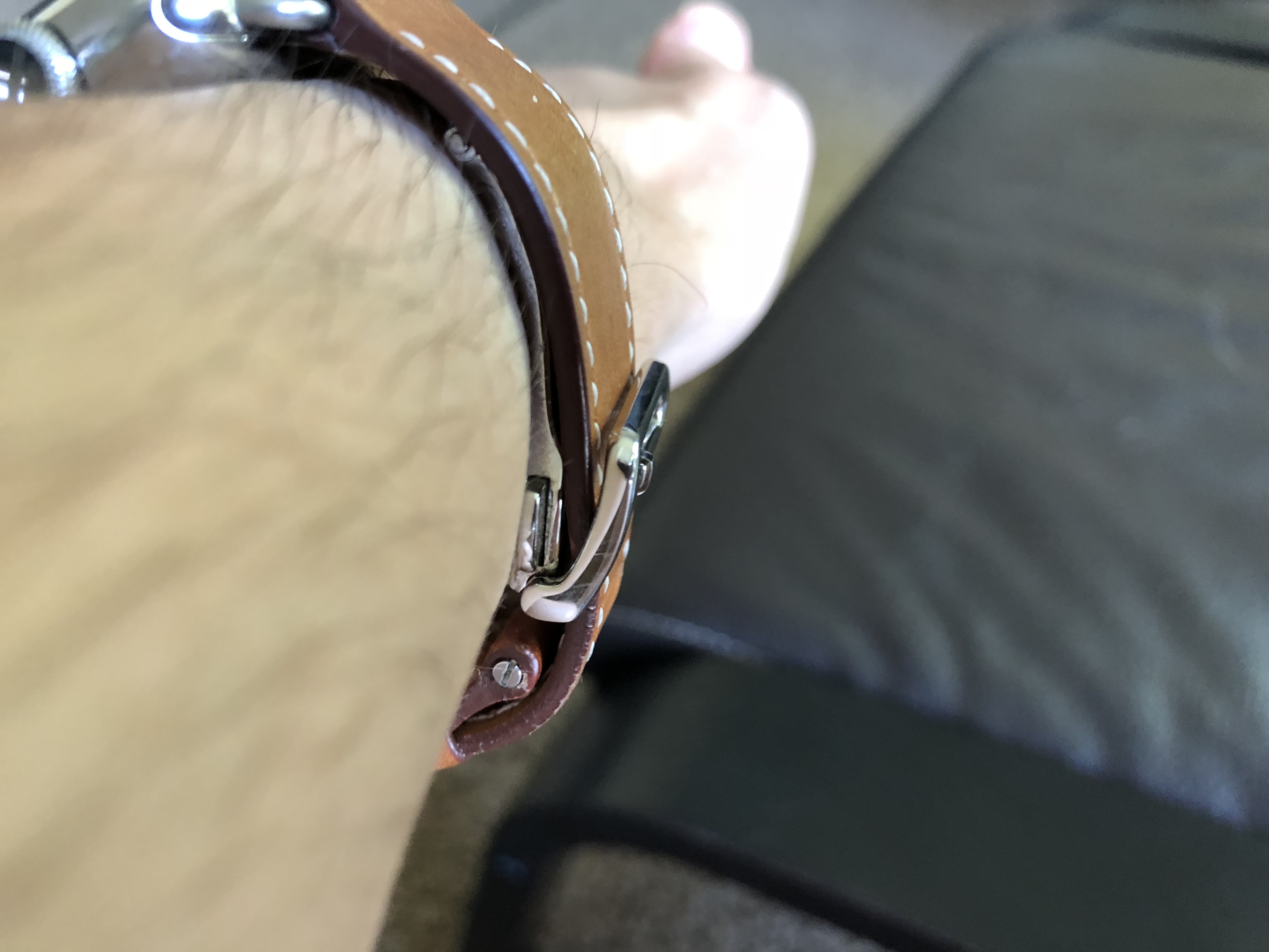 Would anyone who wears their Fauve Barenia daily/most of the time mind posting pics of how it has aged? I’m tempted to upgrade from a knock-off of this band to the real deal. Thank you in advance!