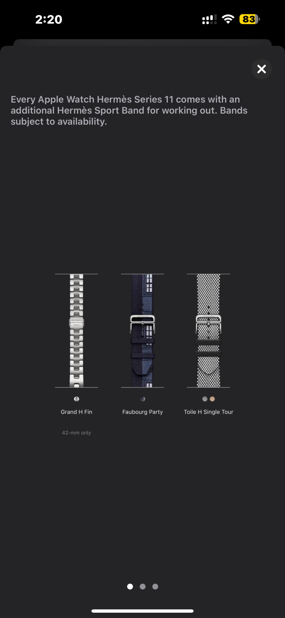 Also ordered Gris ultra band for series 11 and the bordeaux and blue Kilim bands. And they other new series 11 Hermes band. Oh boy.