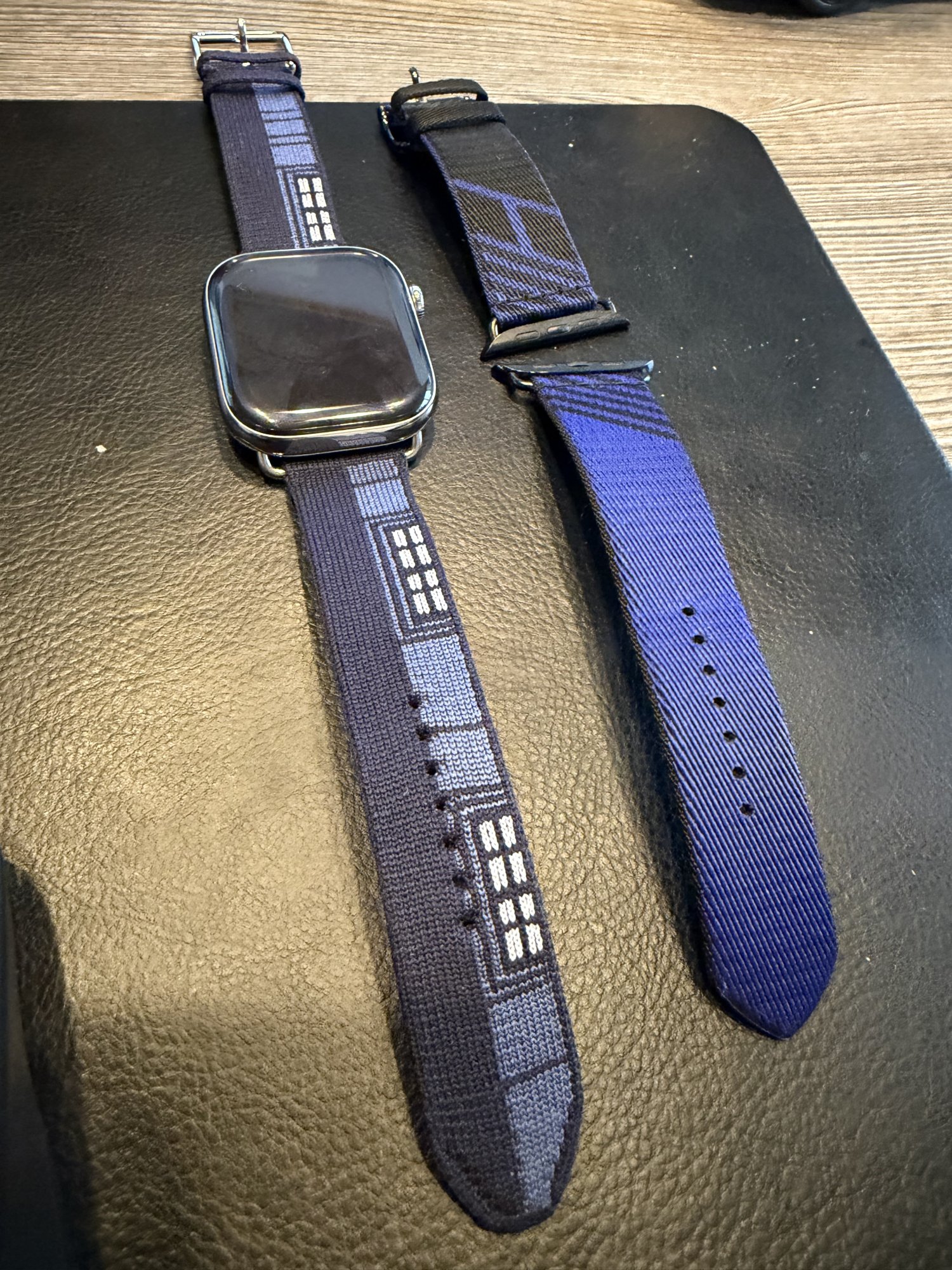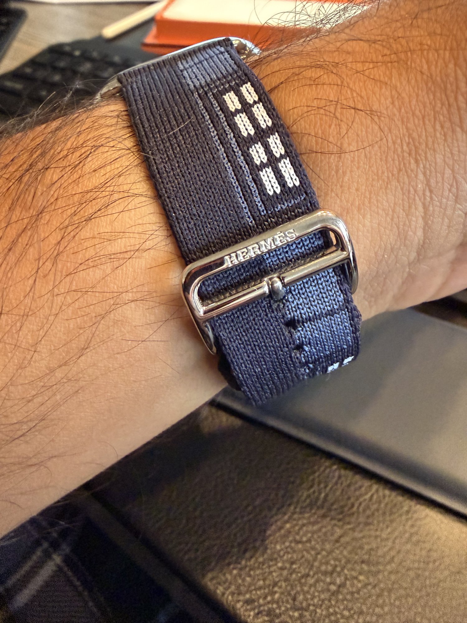 To follow up my own post, I just received the Fougourg Party from Hermes and I’m not sure how I feel about it. The quality of the material is top notch, a nice blend between soft and durable firmness that feels high quality. For some reason the hues of blues on the band looked to be a bit more vibrant in pictures and online. I do find the design and the split colors with the windows a bit cool, but but I’m not immediately too impressed. I don’t know, I think the collectors nature of this one got to me. I’ll try it for another day or two and see how I feel. I believe Hermes.com has a return policy in case I decide to return. I never had to return a band to Hermes.com so hopefully wont be too much of an issue.Today I'm seeing stock of the Faubourg Party 46mm band at a local Apple store (The Grove in LA), if someone is looking for one here. It may also be in stock at other stores, but looks like they are trickling in!
