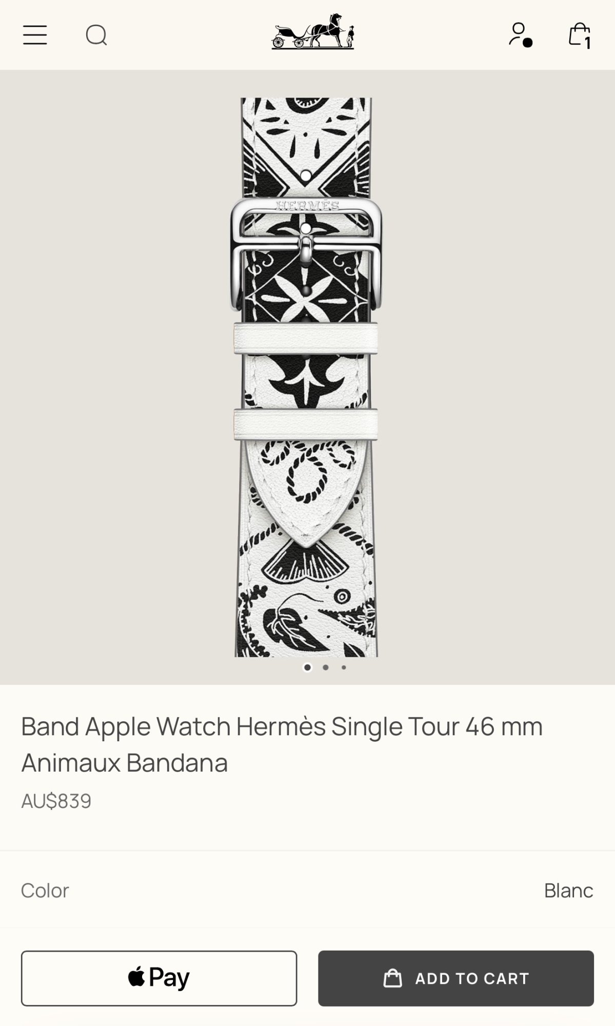Does it come for the 46mm ?Animaux Bandana single tour back in stock on Hermès AU