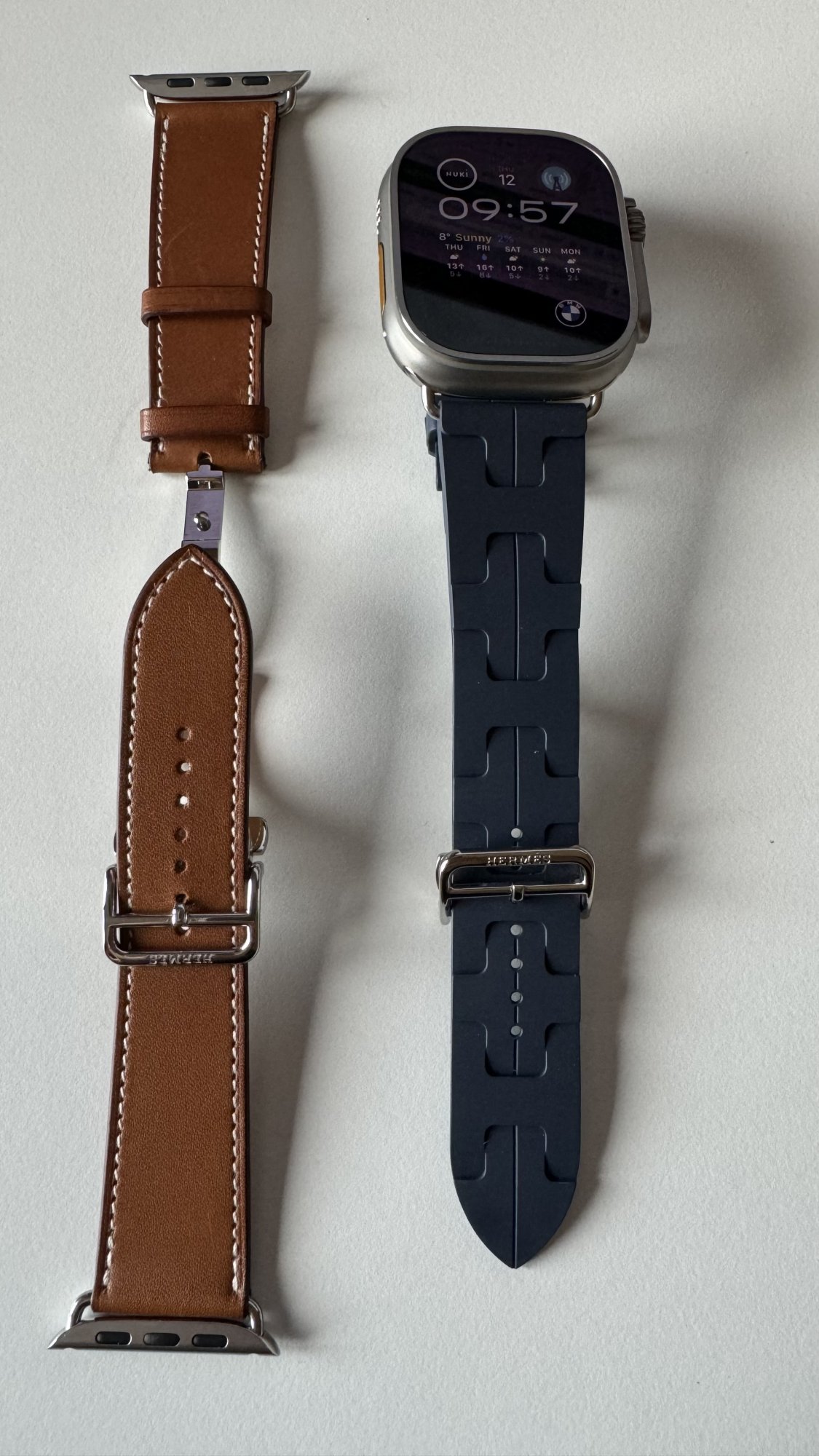 I love my Ultra with the blue ocean band, the Kilim looks like a more refined and interesting version of that so I am picking up the Kilim in rouge and kaki today. Has anyone else tried the Hermes bands with the Ultra? I saw someone mentioning sanding down the finish to more closely match the titanium brushed look but haven't seen photos online anywhere.