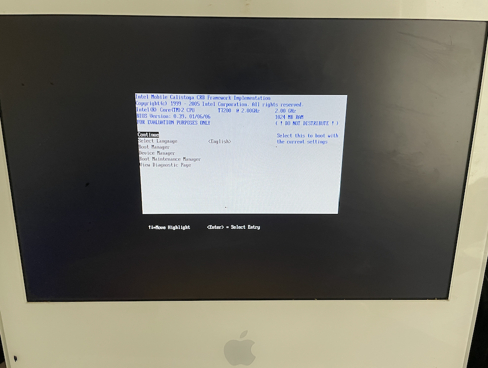 Around a month ago I got my hands on a 2006 iMac5,1 with an Intel Core 2 Duo with the intention of attempting to access the hidden generic EFI menu on the original iMac4,1 firmware documented on this forum: https://web.archive.org/web/2006040...com/?cmd=displaycomments&dcid=407&entryid=407