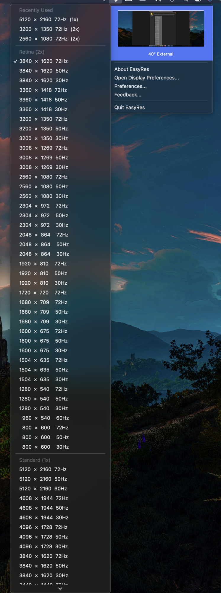 Will I still have those resolutions with higher refresh rate (72Hz in LG 40WP95C-W via TB4)?