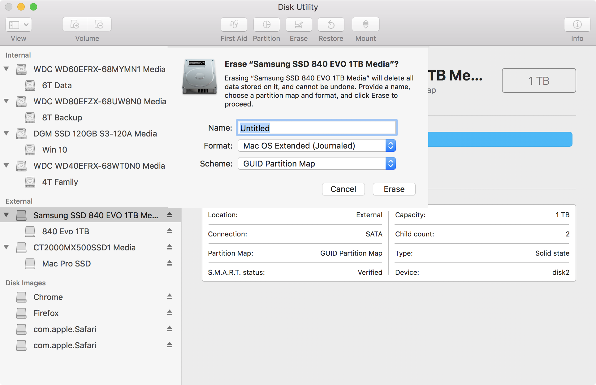 So another 20 minutes passed while Internet Recovery loaded for the third time. When I accessed Disk Utility there was no option to format my new drive in GUID format, only standard Apple formating, ExFAT and DOS.