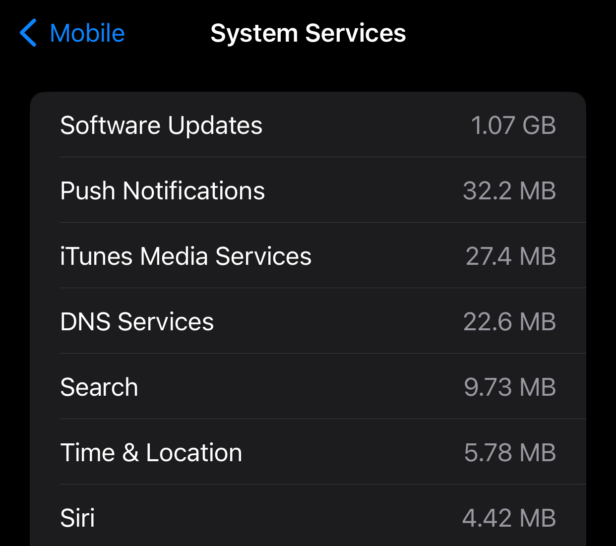 * Low Data Mode enabled for Mobile/Cell Data (Settings → Mobile → Mobile Data Options → Low Data Mode = on)