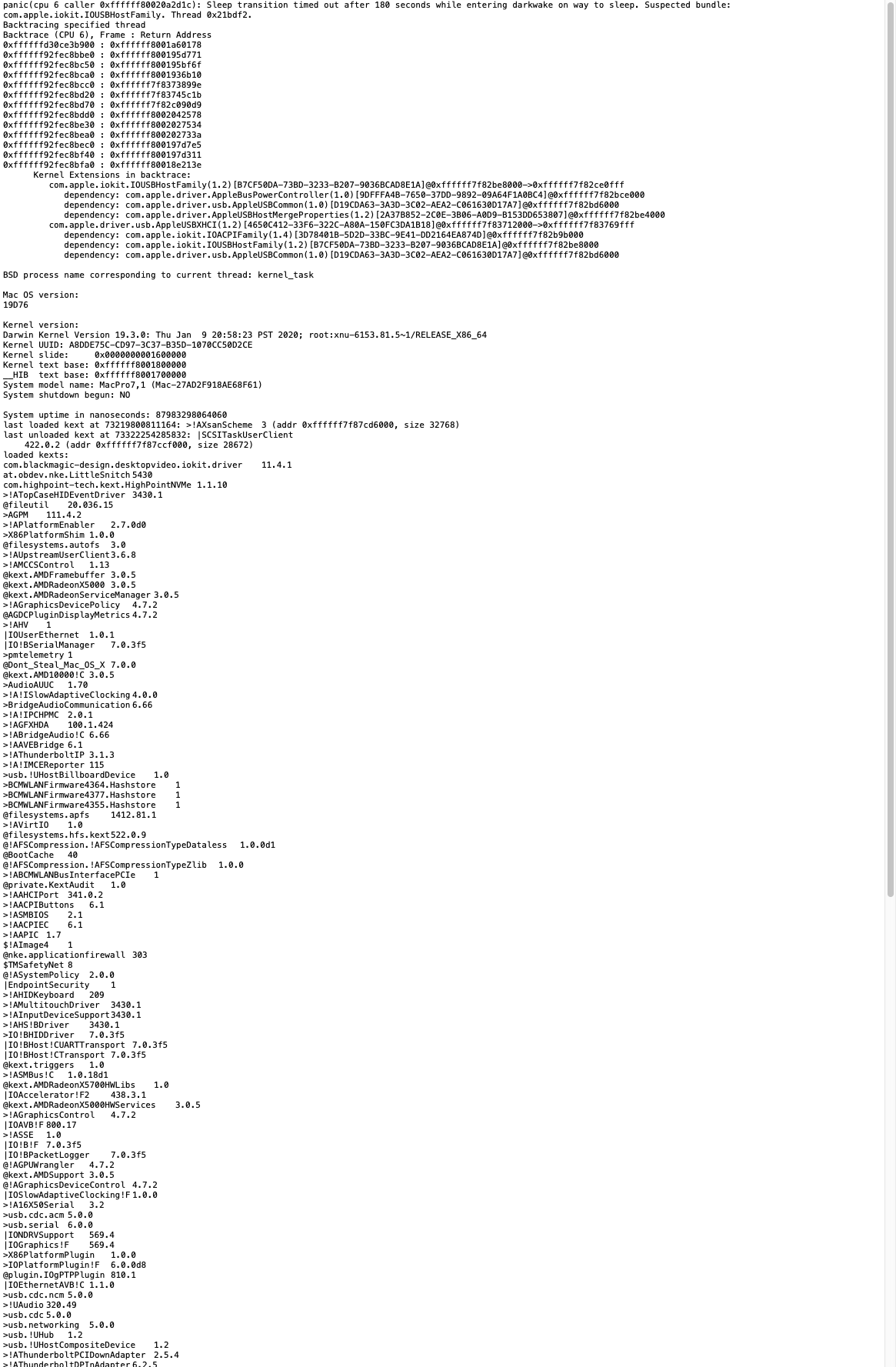 Darwin Kernel Version 19.3.0: Thu Jan 9 20:58:23 PST 2020; root:xnu-6153.81.5~1/RELEASE_X86_64