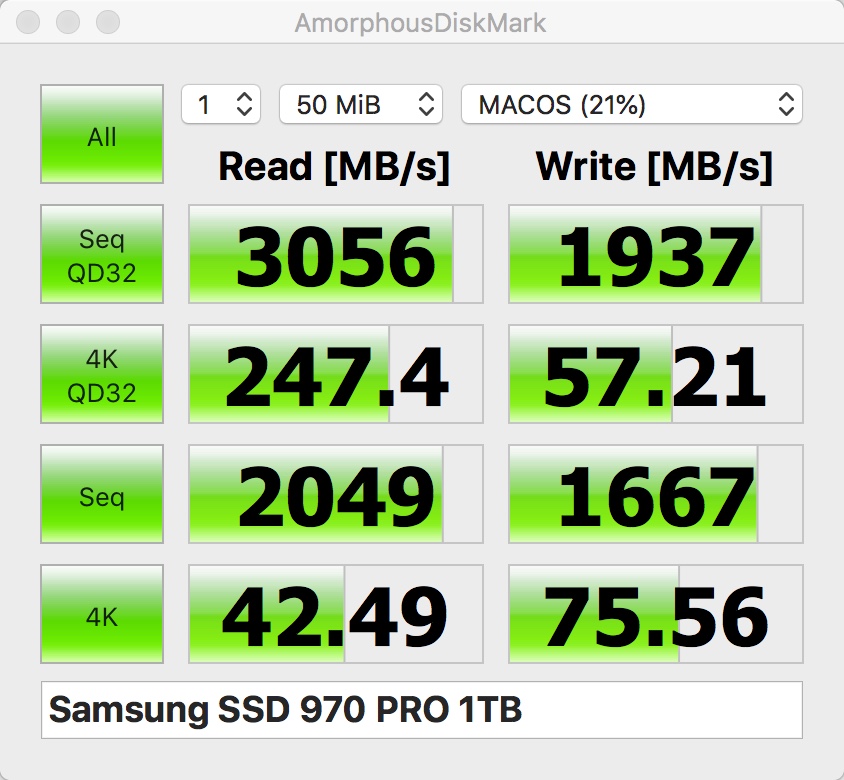 Quick update - Got the 970 PRO 1TB today.. Initial results after multiple blackmagic runs - highest speeds 2712MB/s Read and 2538MB/s Write but I can't cross the 3000MB/s Read mark and I think it's due to hardware (mac pro 3,1) limitations.