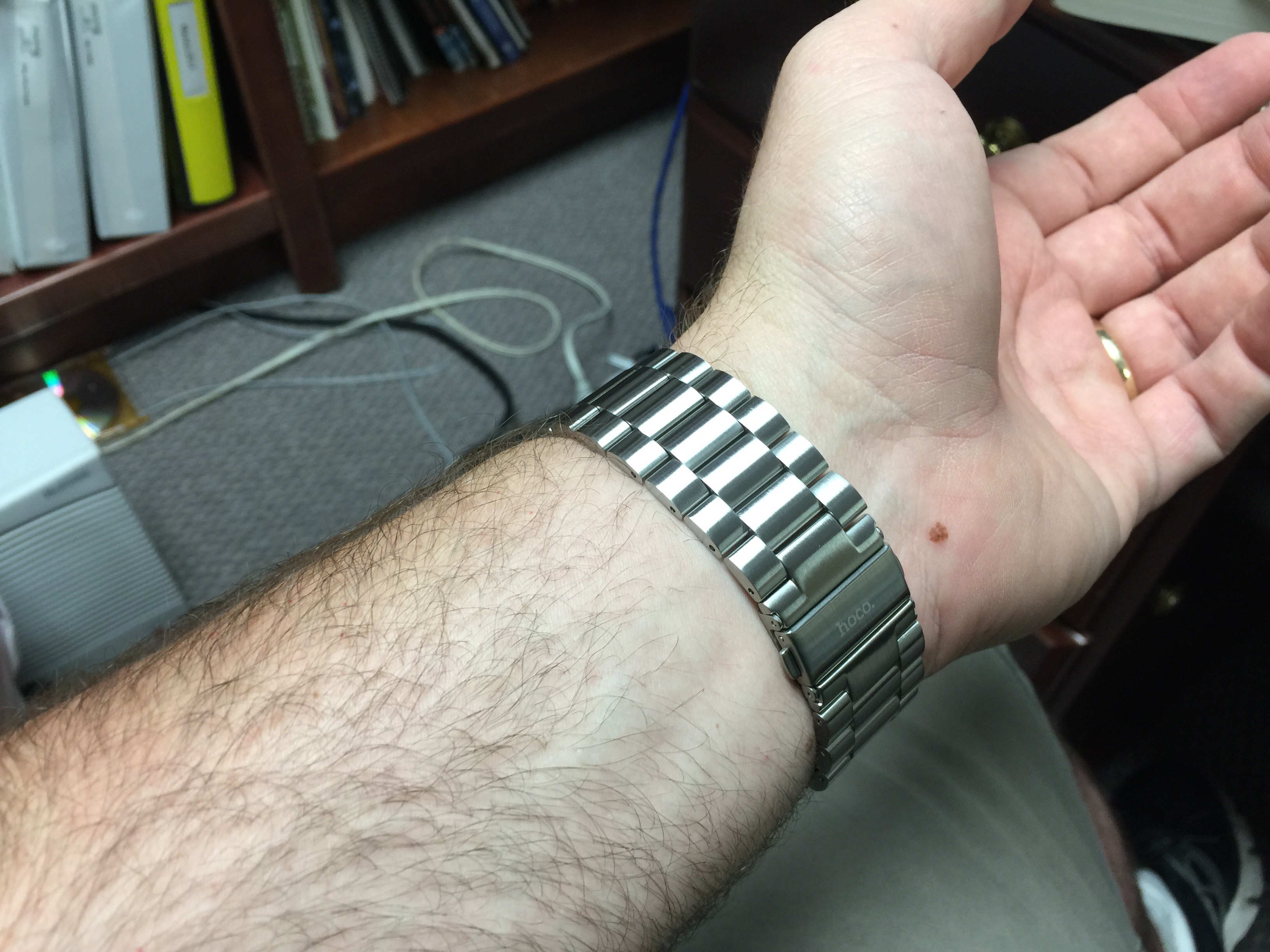PS, my Hoco black leather band looks and feels awesome but the buckle on it has a gold-ish tint to it. Does not match the stainless on the watch imo.
