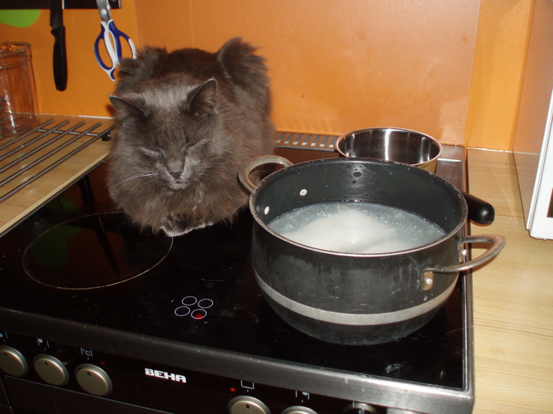 Today I was almost successful in an attempt to assassinate one of my tormentors by weaving around his feet as he was walking. I must try this again tomorrow -- but at the top of the stairs.