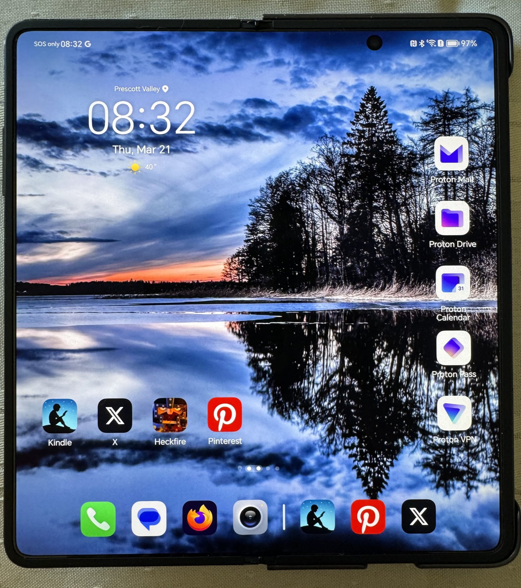 First impression - perfect hand size. The front facing screen is great, the folding action really smooth, and the inside screen also great. However … the software is an OMG! It looks like the illegitimate child of an iOS/Android breeding event. Not the nice features either. Okay… time to dive in and see what can be ”adjusted”. It does come with some bloat apps but all can be uninstalled (FB, Instagram, LI, TT, etc…). It does come with the Honor store installed but you get an access error here in the US. Since it comes with the full bevy of Google and can sideload this is not an issue. For security, the side fingerprint sensor (power button) works quick and flawless. Just putting your finger on it, if recorded, unlocks it. FaceID is good but has a hesitation. Will look to see what can be done to improve it.