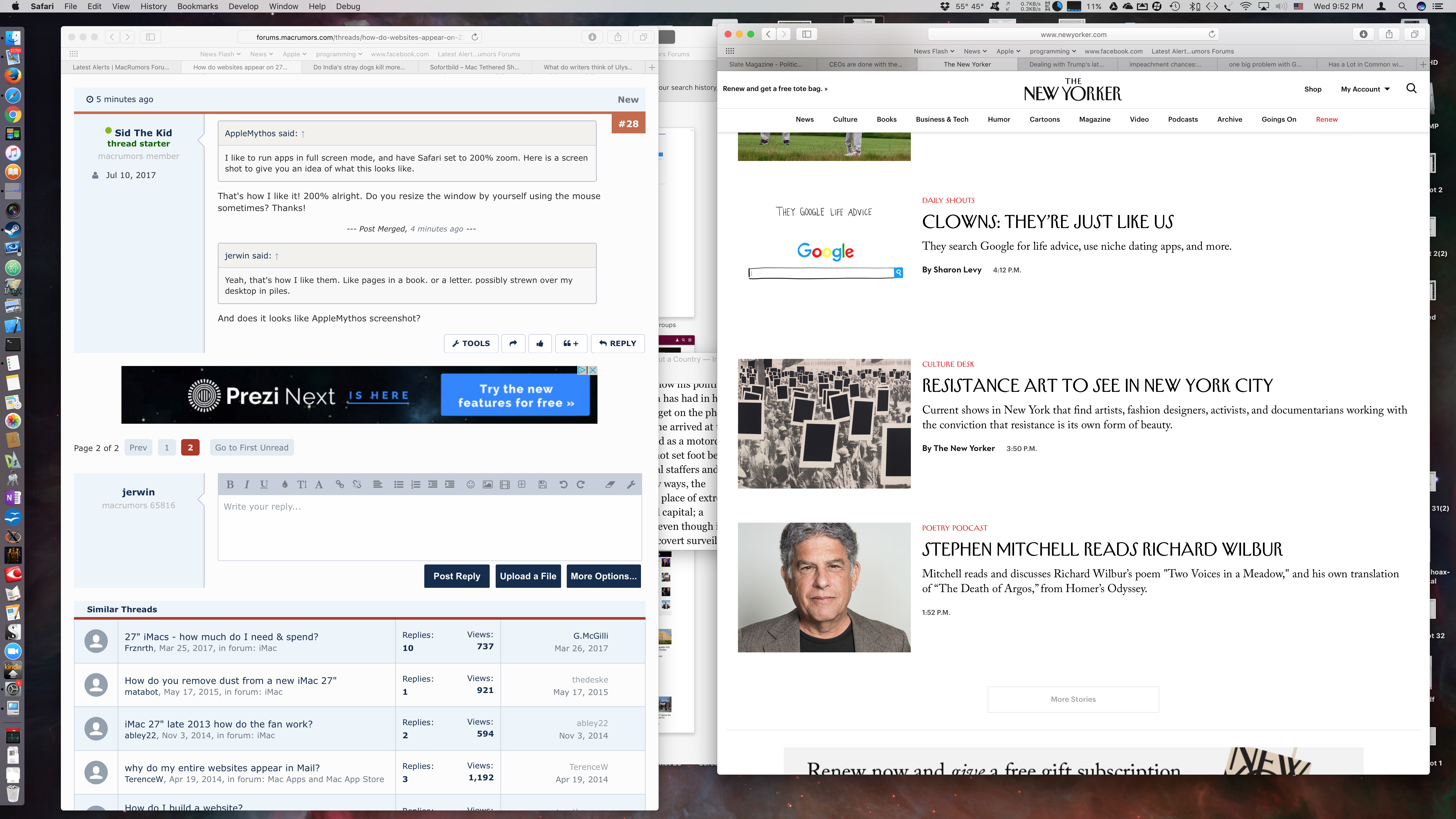 The issue that this thread touches on is UI related more than anything else. Like some has pointed out, most websites still use the traditional vertical column layout methodology, and for obvious reasons the designer needs to put a hard limit as to how wide the page should scale. When the page is being rendered full screen in an ultra wide, or in the case of an iMac an ultra high resolution display, if no width limit is in place, what you will get is a comically wide main column, where even long paragraphs are only 2 or 3 lines long, and inline images are only flushed on one side leaving space on the other.