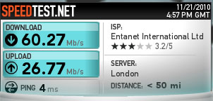 Im enviously looking at Virgin Media Fibre optic broadband. 50 meg speeds and unlimited downloads with 100 megs coming in the future. Im really happy with my service and my ISP have been great since i have been with them which is going on 5 years now. However as i get my broadband through a BT phoneline and live a fair distance away from the exchange i only get 8meg speeds on an up to 24 meg line. This isn't my ISPs fault but that Virgin deal does look good