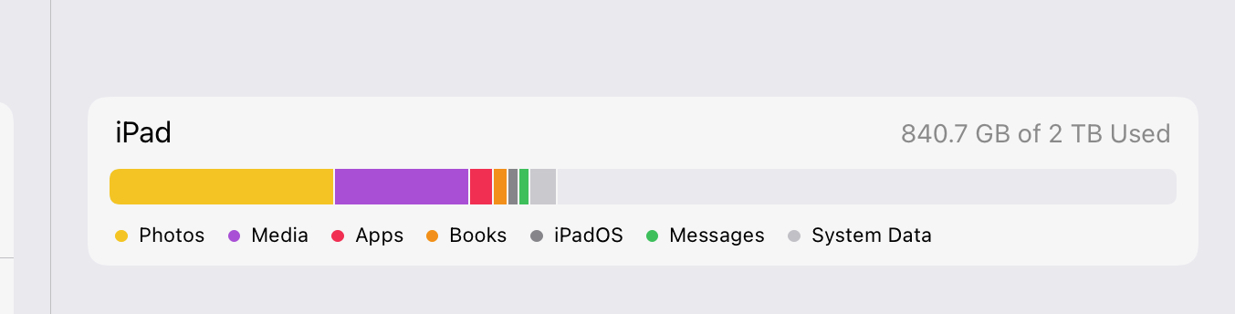 Care to share a printscreen of your storadge use - and explain your use case of the iPad and what model it is? I am considering 512Gb for the new purchace, I know its a bit overkill, but I feel like I wanna have that much.