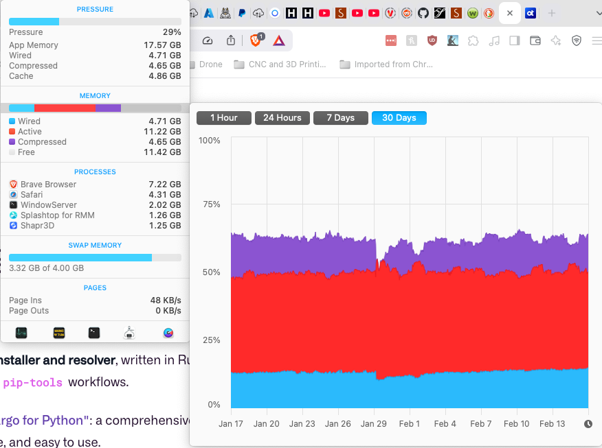 So while your charts imply immediate uses would fit nicely with 24GB, can you anticipate demanding more from your Mac in the NEXT 7 years? If so, add some fudge factor to that. Similarly, I suspect this starter A.I. will only fatten macOS over the next decade as more and more A.I. is piled on. One might try to rationalize that they won't use it but I suspect many of the Mac apps will develop dependencies on it to "force" A.I. to be "ON." Since we can't know how much "fatter" macOS will grow in terms of RAM demand, I'd add fairly significant "fudge" to that estimate too.