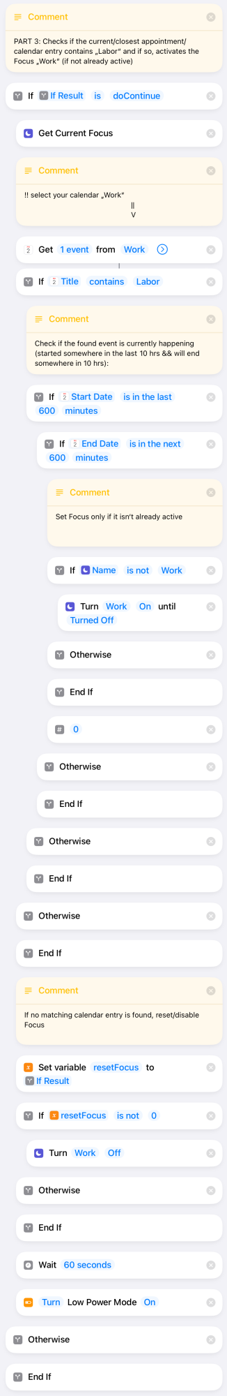 I'd like that automatically my focus mode is set to "Work" at 9h until 12h by recognizing in my event the word: "Labor" in the text of the topic.
