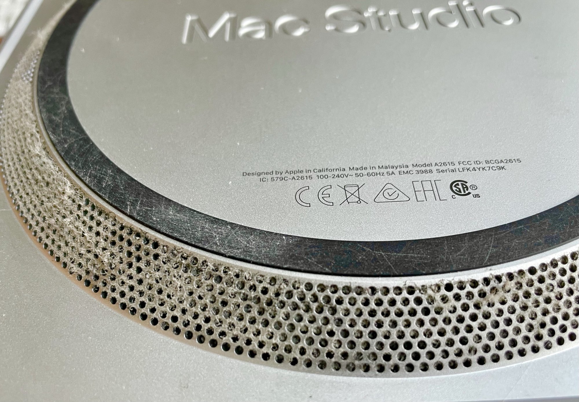 Holy crap!!! I bet the units at Apple do not look like this!After a year I flipped the MacStudio over. Wow! That’s some level of grime. We have a housekeeper twice a week and a robovac runs every morning. There is no visible dust anywhere in the room—except on the grill of this thing. WTF? And it’s deep in the little holes, too.