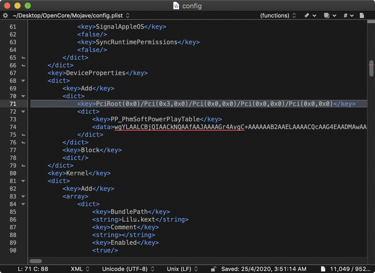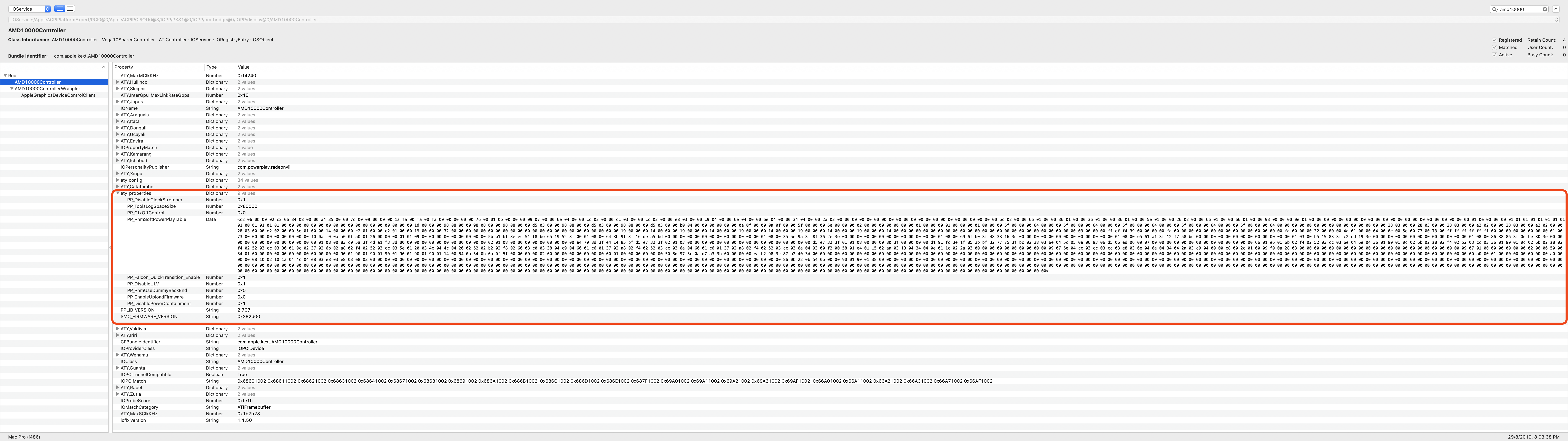 OK, the goal achieved. Now, we can downvolt the Radeon VII with a kext (which only contain an info.plist to inject the required parameters), no need to modify the system kext anymore. OS update won't revert the modded kext. PRAM reset won't break the GPU driver. In fact, we can simply reset PRAM to disable the PP table (good for trouble shooting).