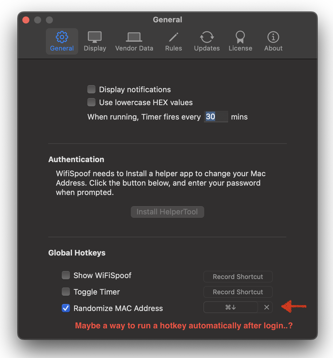 Details: When I login to my account I want to either (1) have a keyboard shortcut automatically run (2) have the function inside the app run, which might be more complex to achieve.