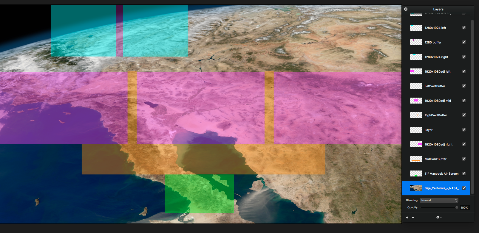 My new iMac is 27" 2017 model which I have AOC 23" attached. I gather that the iMac is 5120x2880 and the AOC 1920x1080. I was advised to try to use Photoshop to do this with layers and boxes which would include the bezels but I haven't a clue how to do this. I have included the thread below - if anyone can advise that would be amazing. This is what Im trying to do and think I have the resolutions correct but may need help with that to confirm I have but mainly don't understand how to do this in Photoshop