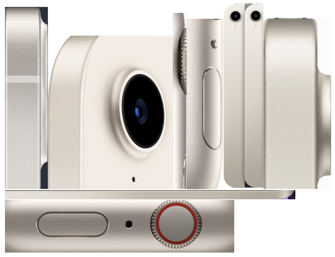 I actually think this looks best on the watch, where it would work with lots of different straps.I made a composite of all the Starlight aluminum finishes (on watch S7, iPhone 13, and iPad Mini) that I could find on Apple's website. I expect slight differences in hue are due to differences in color temperature of the lighting/photos: