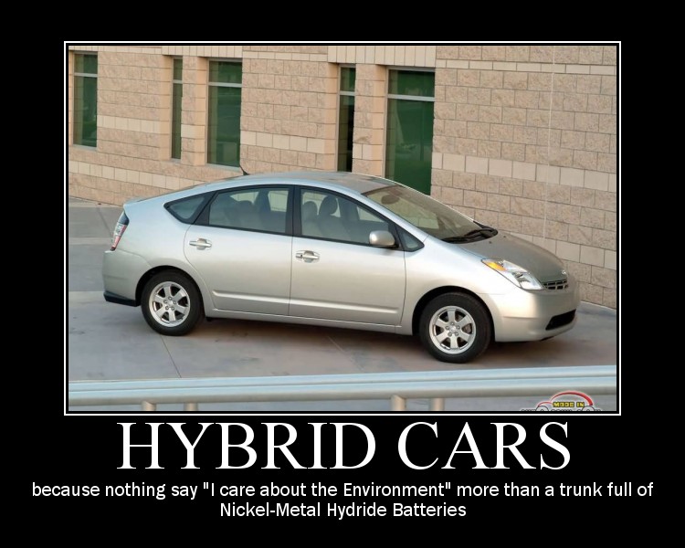 OH boy - do you know the carbon footprint of building something like a Prius? It's MASSIVELY more environmentally unfriendly than a normal car. Total carbon impact over it's life - a Prius is worse for the environment than almost any other car.