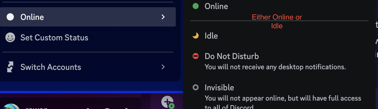 Make sure they're turned on in System Preferences > Notifications & Focus, and in the Discord app itself—make sure your status is set to Online or Idle so when you are pinged you get a notification. See first screenshot for how it should be in the app, and second screenshot for the settings in System Prefs.