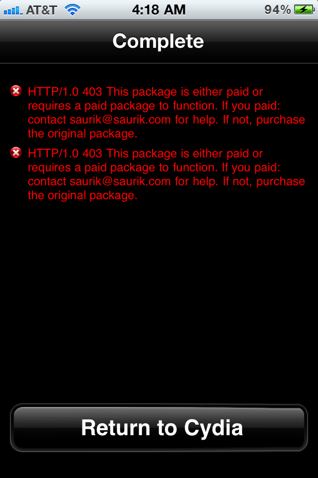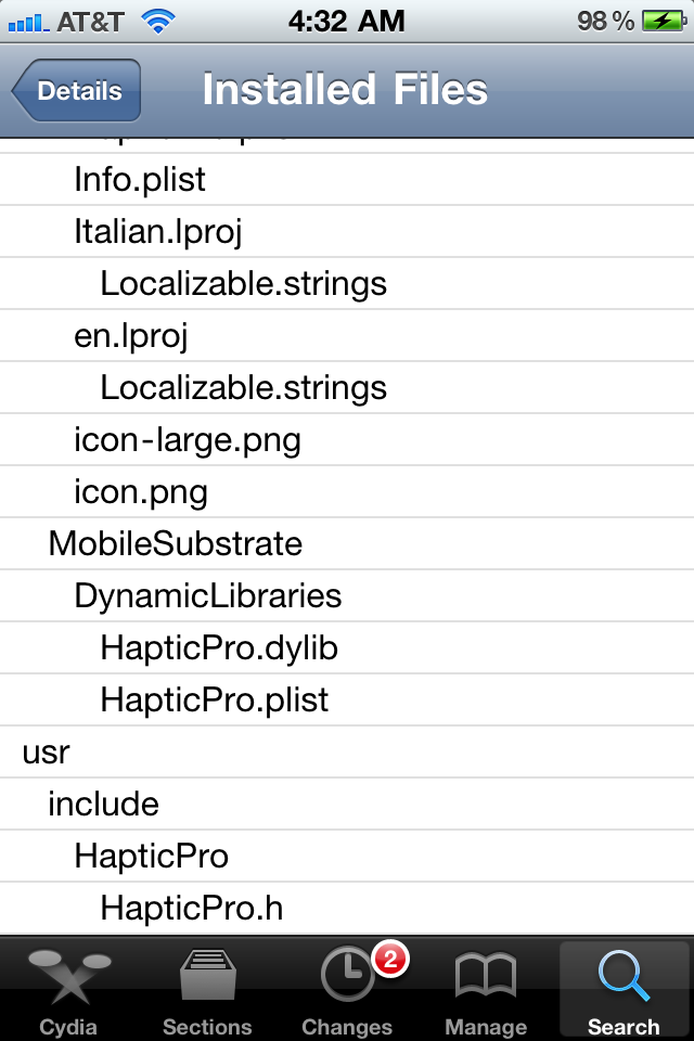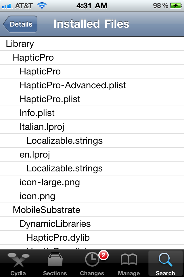This is the first time I've ever jailbroken and was testing things out. When I'm in Cydia it gives me the below message so I went in and deleted the directory that said Haptic Pro, and now the settings menu is gone for it but I still am getting the haptic feedback!