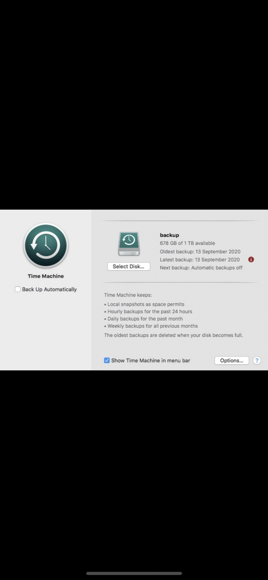 I don’t understand why there is a red exclamation mark next to ‘latest backup’ , I have attached the screenshot showing what it says when I click on it ..