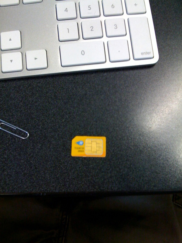 The SIM card they gave me at AT&T doesn't look like the SIM cards I'm used to seeing... the back of the SIM (where the connectors are) is a gold color. I'm not talking about the connectors themselves (those are obviously gold) but I'm talking about the ink color on the card is gold/orange. Anyways... on to the good stuff...