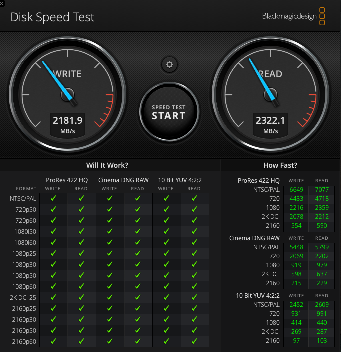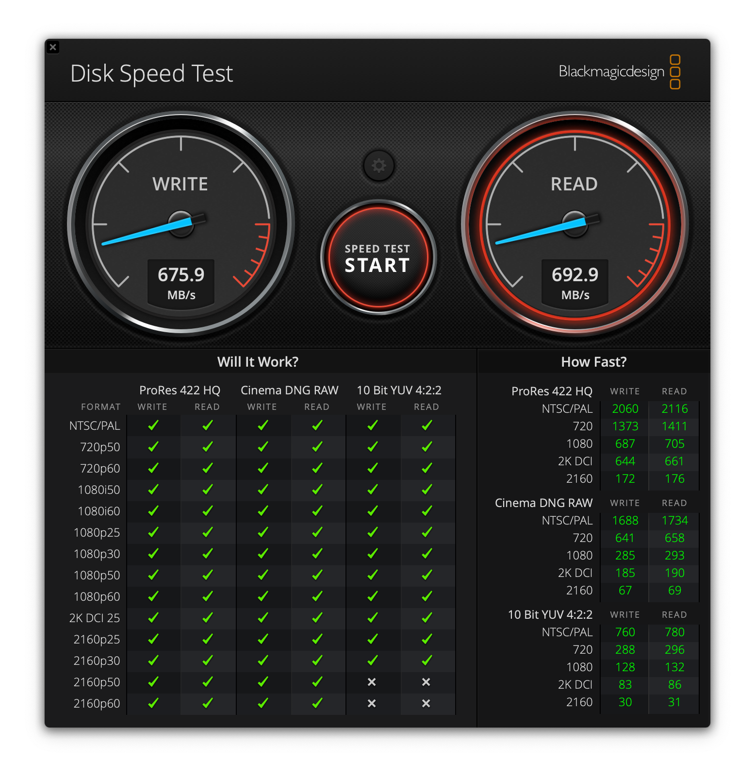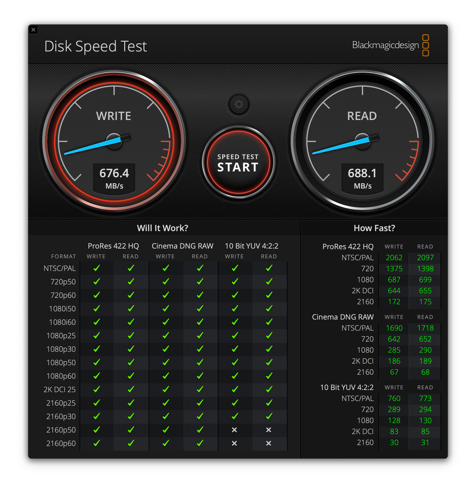 If you need really good speeds, you will have to use a m2.nvme SSD with a thunderbolt enclosure - but the latter are really pricey