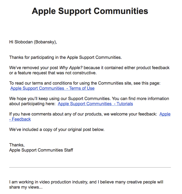 Come back to creative people, listen to us, give us power and not thin machines with useless fancy updates, give us new desktop MAC for video editing and postproduction, give us latest GPU's in new machines, give us ability to have more memory on Macbook pro, give us 6,8 core i7 CPU, give us POWER!!!!Its about the time!!!!