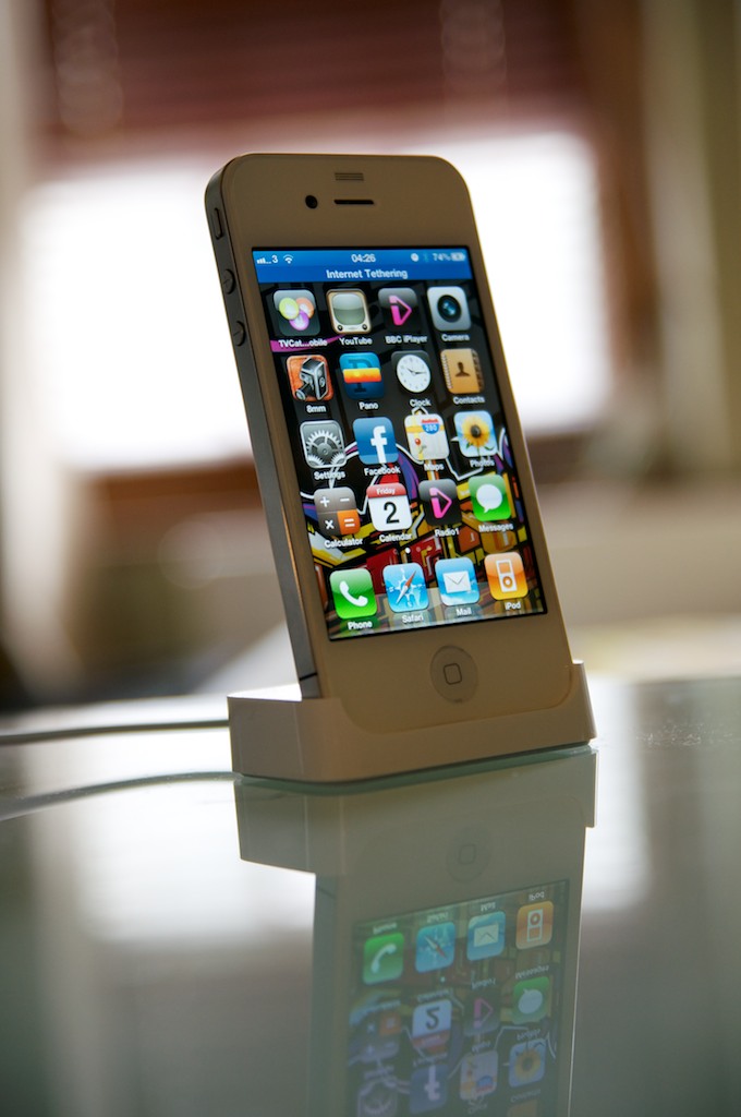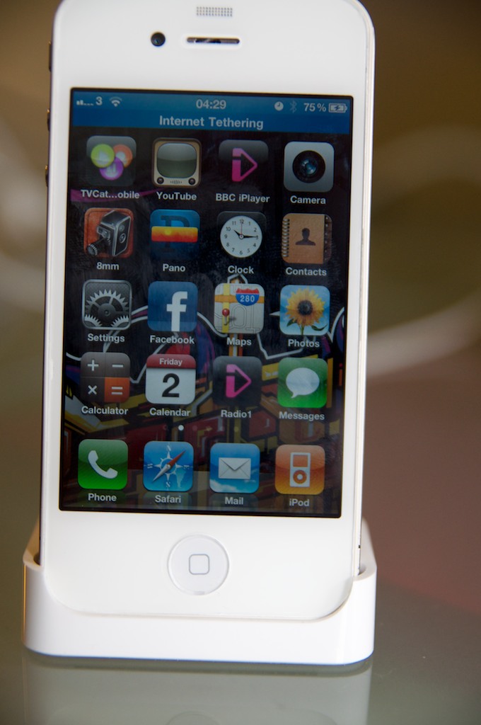 I was up late watching Sky News and it was a report about some non league team winning in the FA Cup (UK Football) - But as the camera panned down the bus, it showed this one player with what looks to be a white iPhone 4.