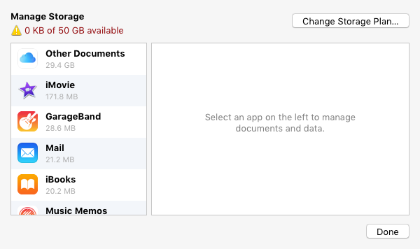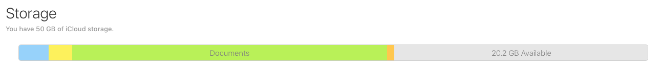 It reports my current usage as being "59GB of 50GB". This is reported on my iPhone 6S and MacBook Pro. I have a 50GB plan for 0.99c a month. But what I don't understand is that it doesn't add up.