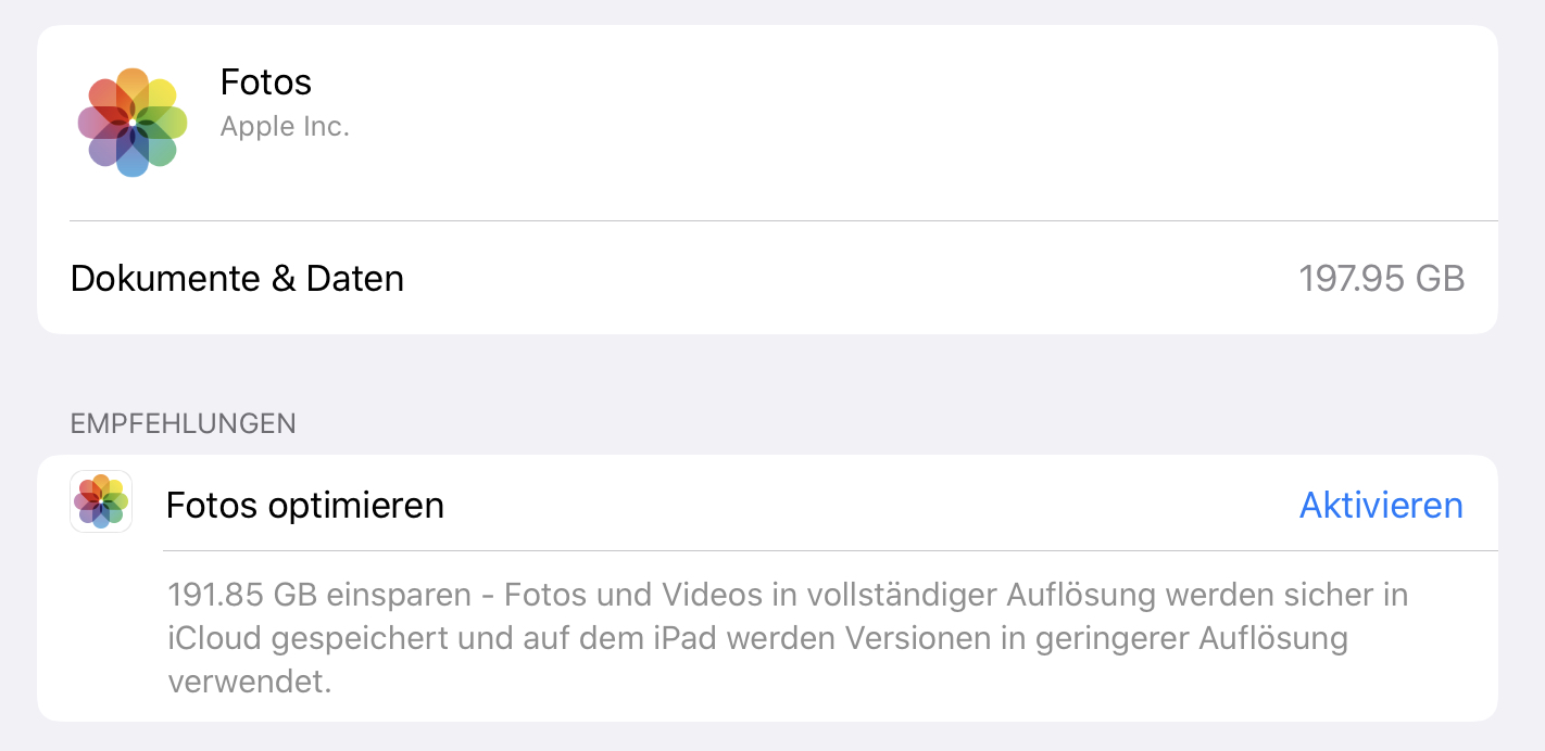 I recently got a notification on my iPhone 11 Pro and my iPad Pro (both with 256GB storage) that there is not much storage left on either device. Of course I immediately checked in the settings app what was causing this situation.
