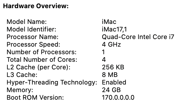 I also have the same i7/500GB model and upgraded to 32GB of Crucial RAM. Following suggestions I removed this and reinstalled the original Apple RAM before updating OS. I tried from High Sierra to Mojave then High Sierra to Catalina but the firmware stuck at 170.0000. I even took it all the way back to 10.11 and tried updating from there with no luck. Sorry to say it didn't work for me.Hi all, I'm new to the forum but have been using Macs since 2005. I also have the same issue with my Late 2015 iMac. I opted to go for the i7 processor when I bought it and upgraded to a 500GB SSD. Everything had been working fine until the Big Sur update when after updating I experienced 2 random shutdown events. I also noticed that my iMac was running hotter than before, even when idling or browsing a single webpage on safari for example.