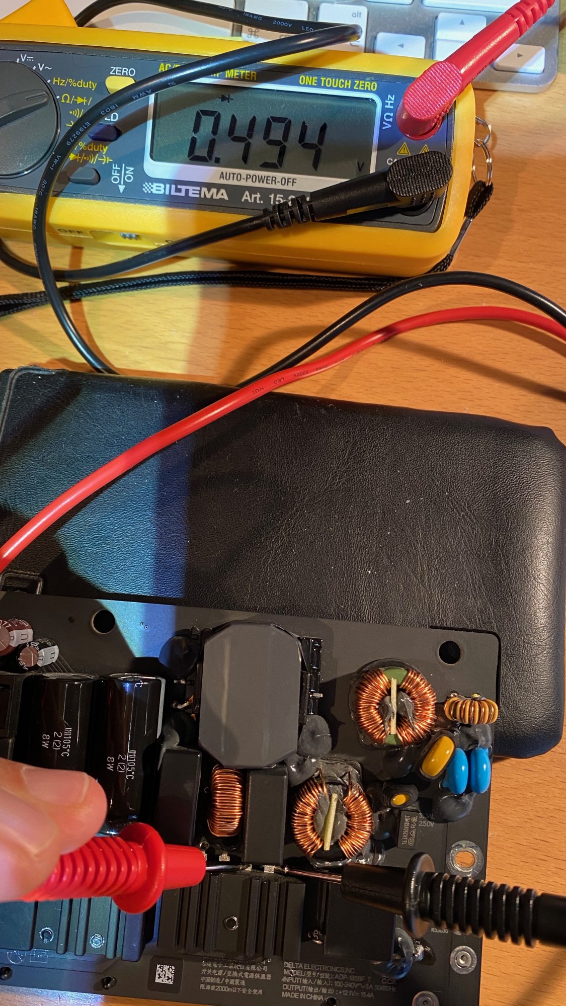 Then check between '~' and '-'. This time, you should see a value with black on '-' and red on '~', and OL when reversed. If you see a low value in both directions, the internal diode is blown.