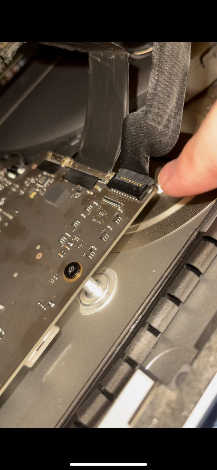 Hi there, we purchased 64 gig Ram memory from OWC Digital to install on our iMac 21.5'' with Retina 4K Display and everything looks good, other than the last cable that won't go in smoothly into its place?