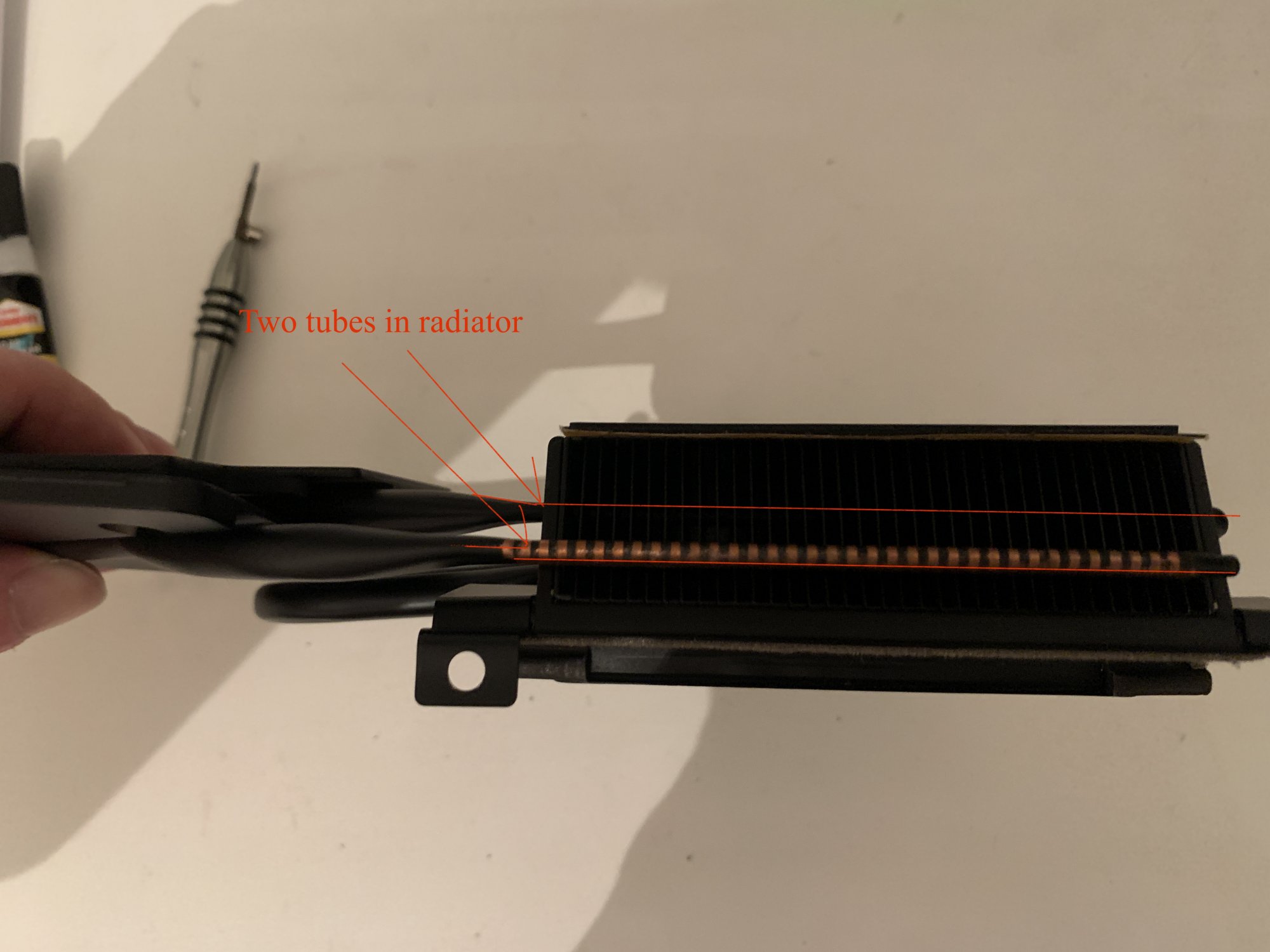 PS.Initially, I thought to put a second tube into the radiator