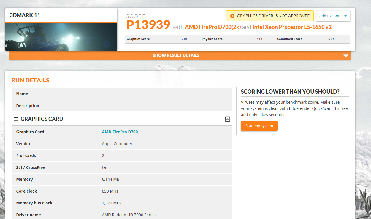 So according to Novabench the m290x is is almost the same as 1 D700